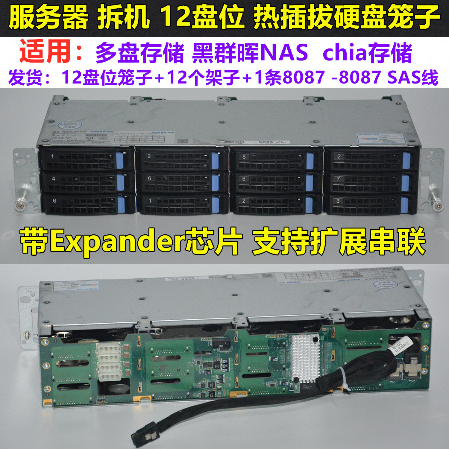 Просто используйте кабель SAS, чтобы подключиться к карте HBA или карте массива, чтобы реализовать идентификацию 12 жестких дисков