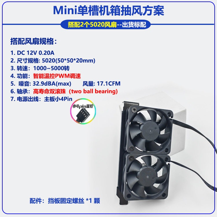 | Цвет: | Фиксированный кронштейн во всю высоту + вентилятор 6025, Фиксированный кронштейн во всю высоту + 2 вентилятора 5020, Модель половинной высоты + вентилятор 5020, Модель половинной высоты + вентилятор 6025, Концентратор — функция ШИМ |
