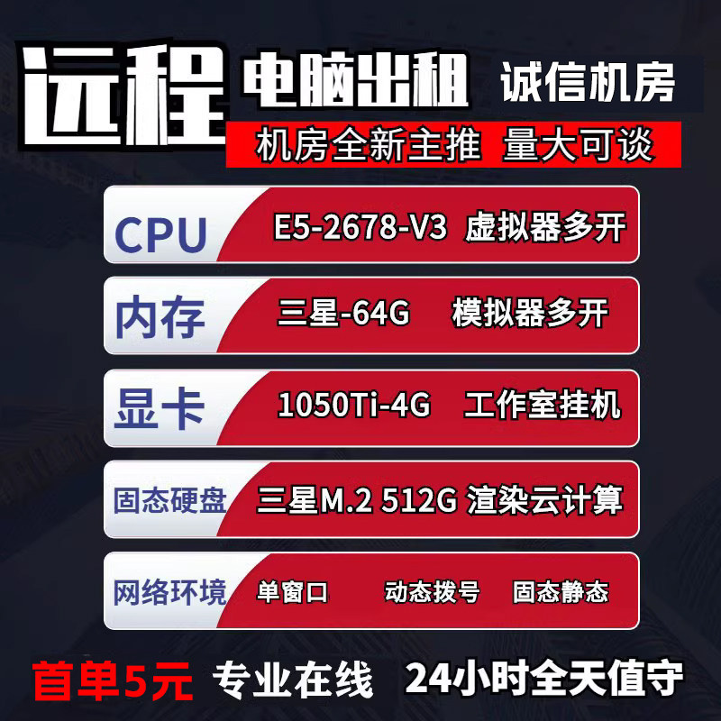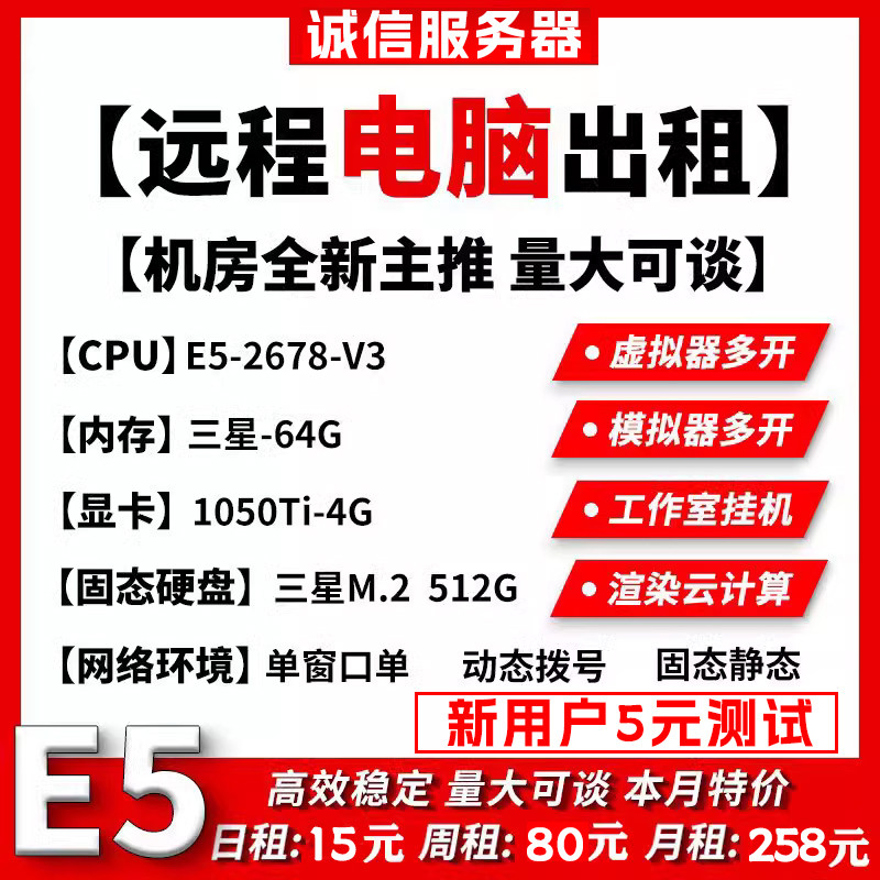 Удаленный компьютерный прокат сервера E3E5 Сингл и двухканальный мульти-открытый студийный хост 2678V3 Виртуальная машина