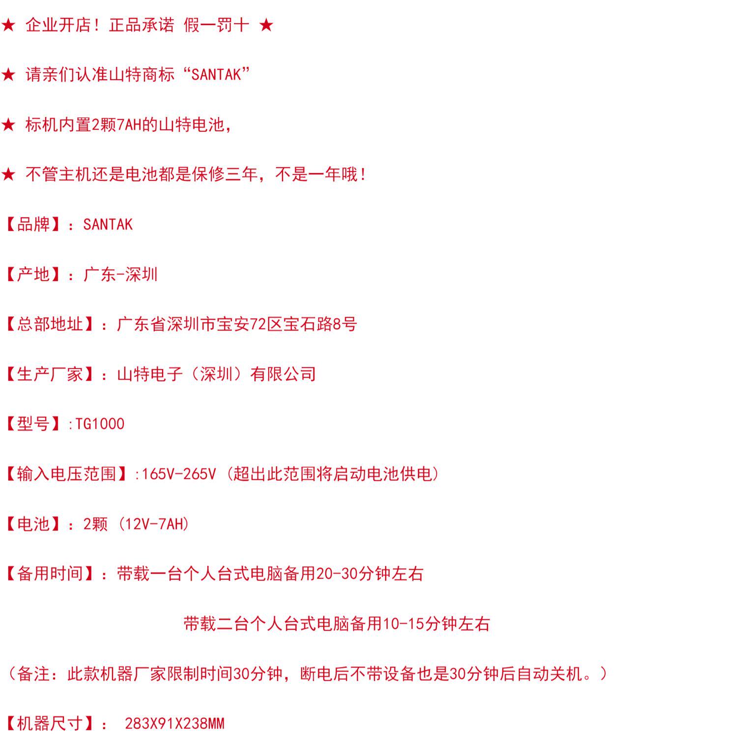 Shante UPS питания источника питания TG1000 в течение 20 минут
