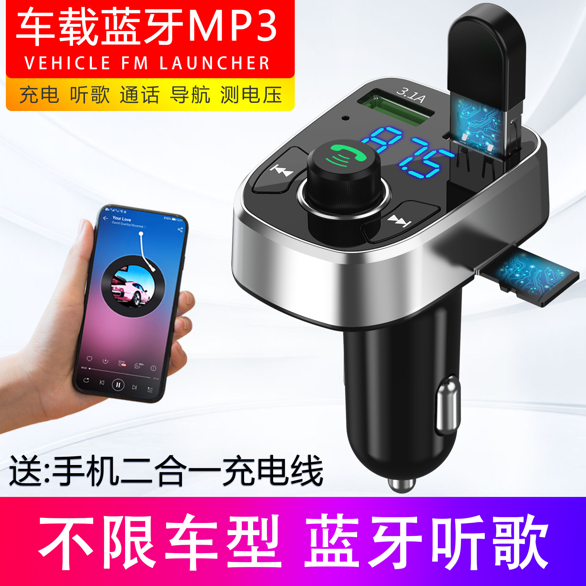 Универсальный музыкальный USB-флеш-накопитель, карта памяти, зажигалка с зарядкой, MP3, bluetooth