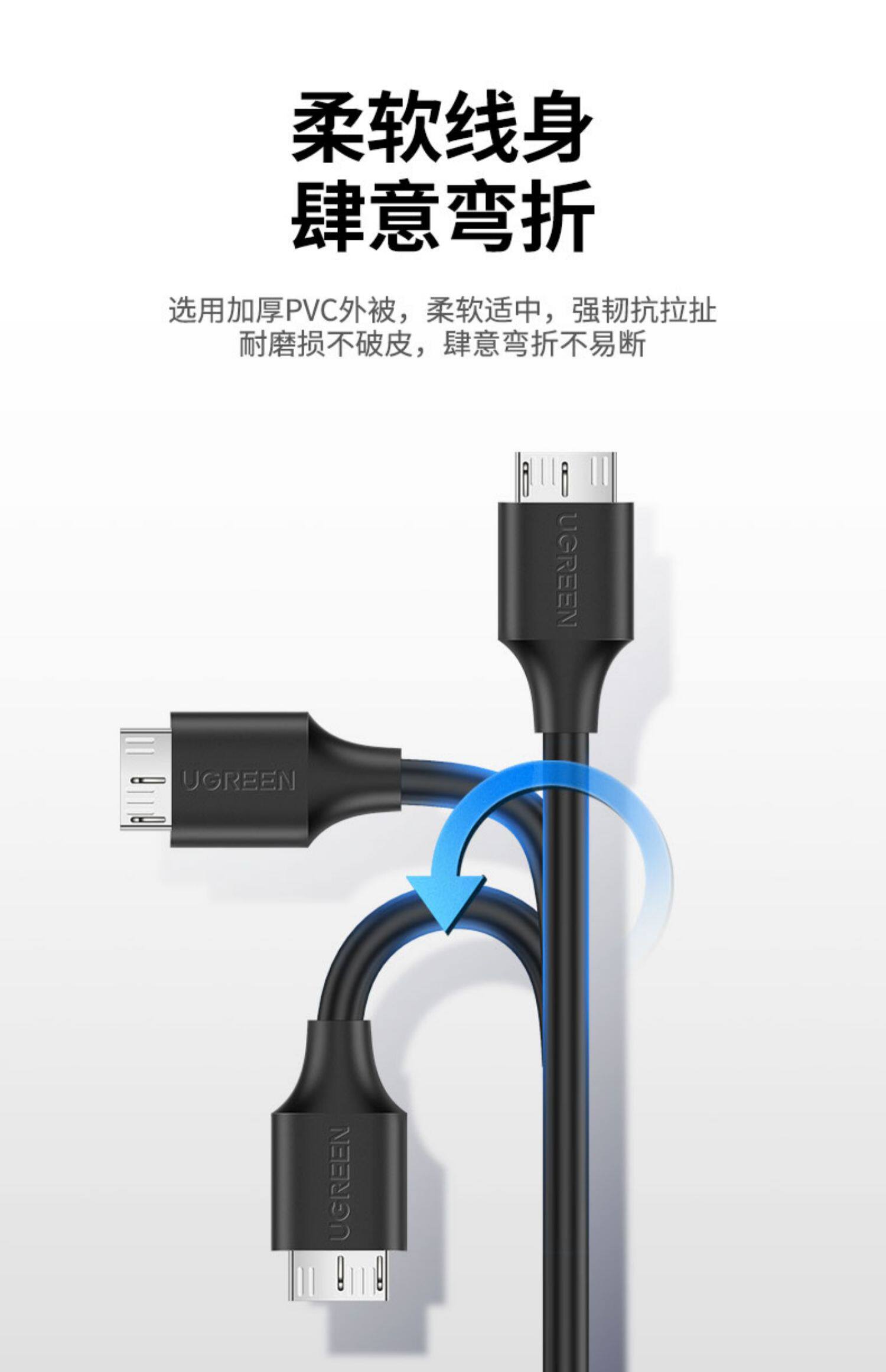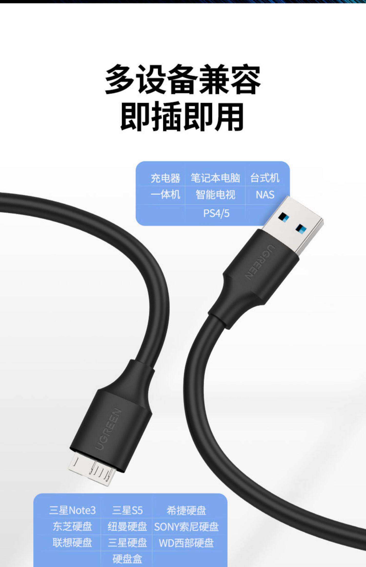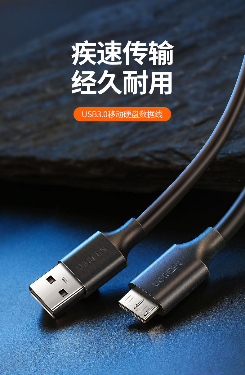 绿联 Micro USB3.0 мобильный кабель для передачи данных на жестком диске, двойной источник питания, быстрая зарядка, подходит для Sony Toshiba wd western Seagate note3/typec, подключенного к компьютеру, удлинительный кабель для мобильного телефона