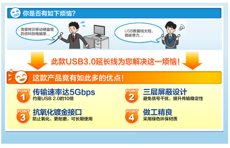 Япония Sanwa USB3.0 Линия расширения данных Высокоскоростной передачи Тройной экранирование с золотой кашт