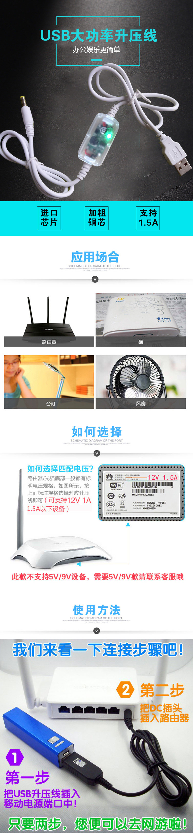 USB повышение линии линии зарядки 5 В литр 9V12V1.5A.