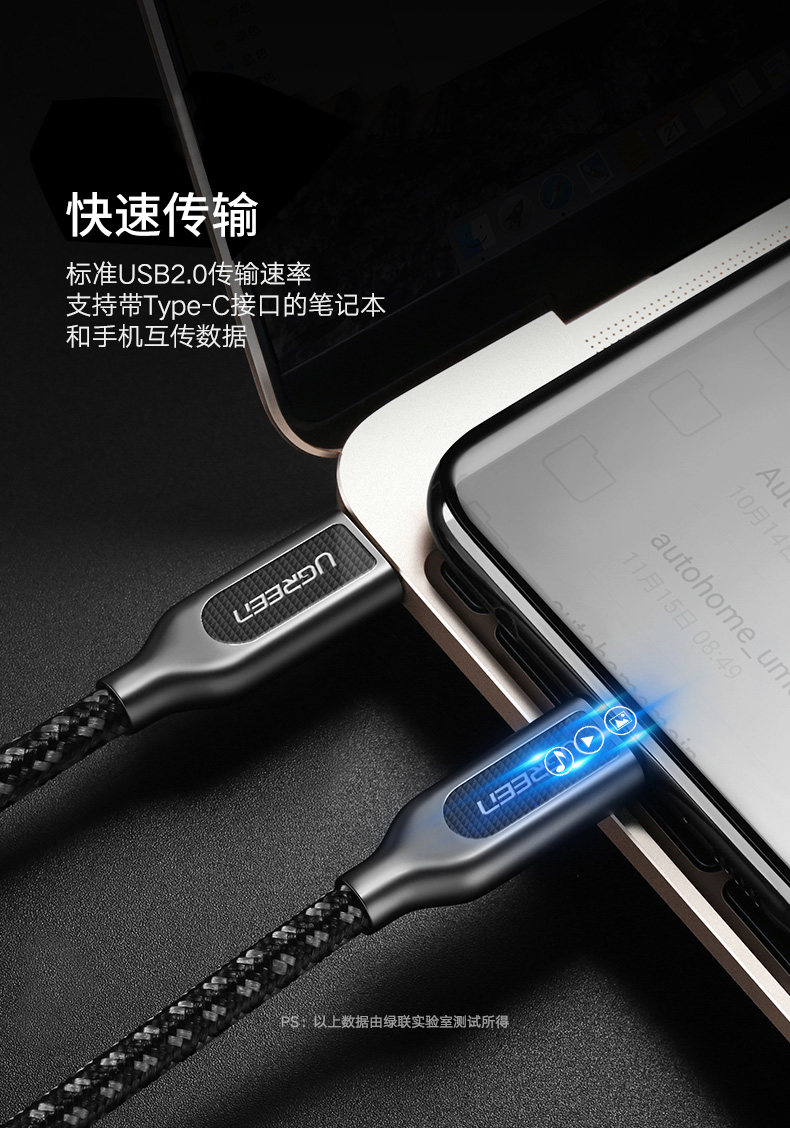 绿联 Type-C2.0 Общедоступный кабель данных двойная головка 3A Fast Charge MacBook Pro/Switch/SSD Мобильный твердый жесткий диск, подходящий для просо 6/8/Mix2sc U11