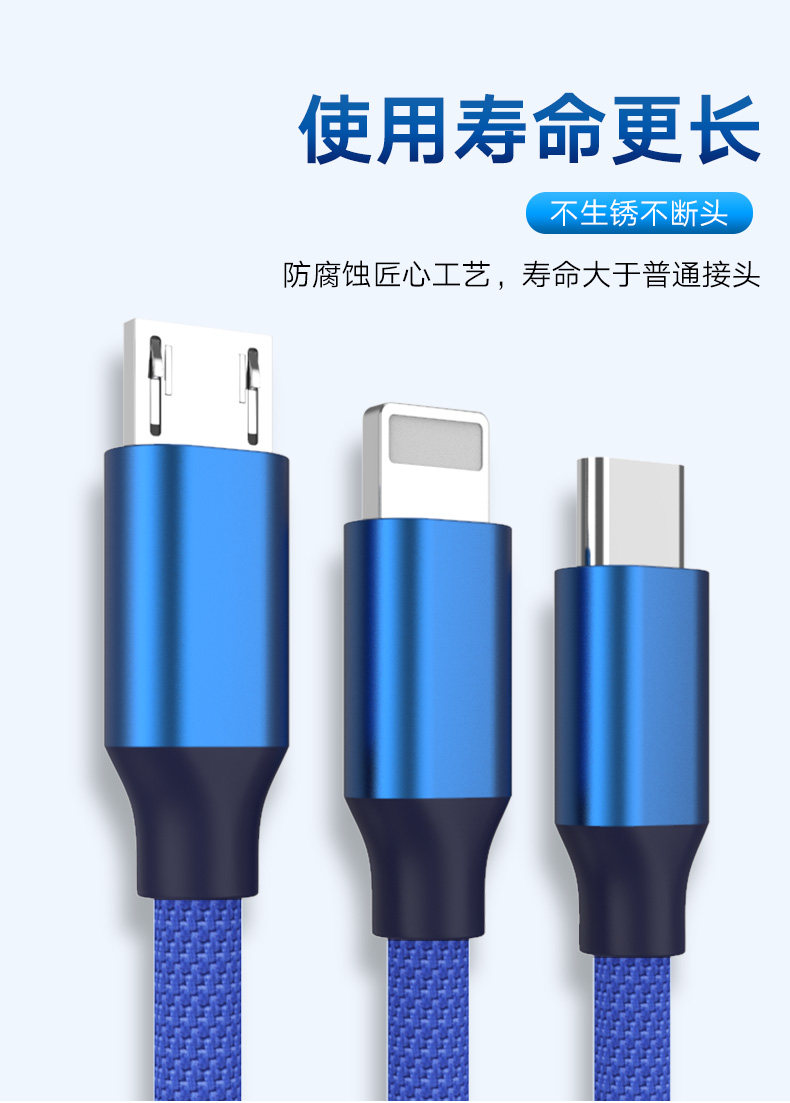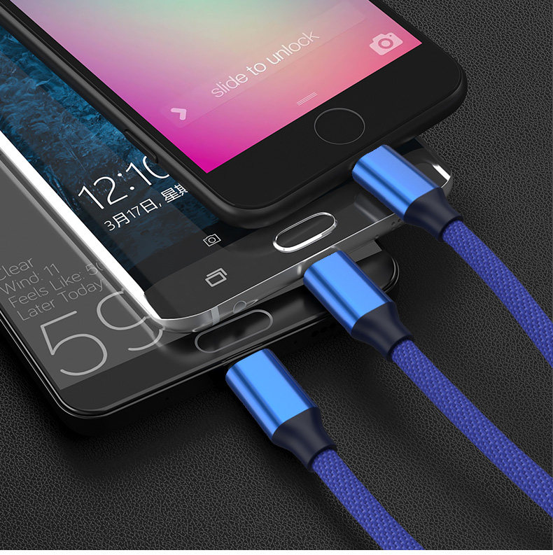 Apple, huawei, vivo, xiaomi, oppo, samsung, совместимый зарядный кабель, быстрый длинный мобильный телефон с зарядкой, андроид, «три в одном», 2м