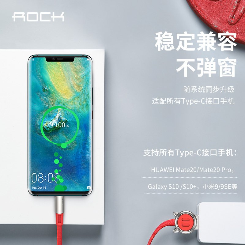 Rock TPYEC Зарядка кабеля Линия данных Тип-C быстрое зарядка, применимая к Huawei P40P50Mate Pro милый мультипликационный мобильный телефон xiaomi android universal TPC Prinse