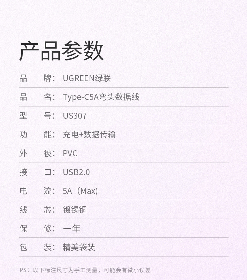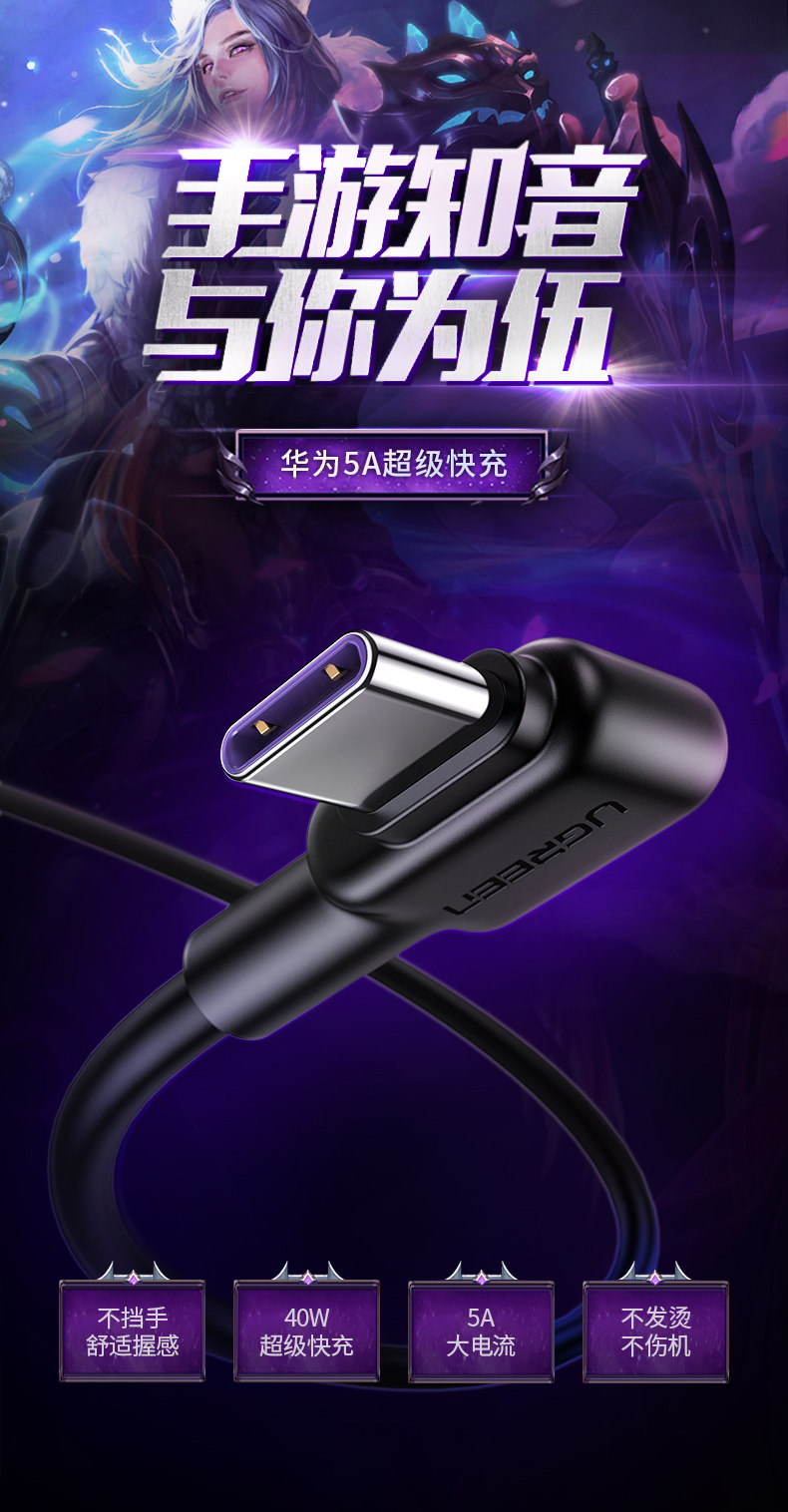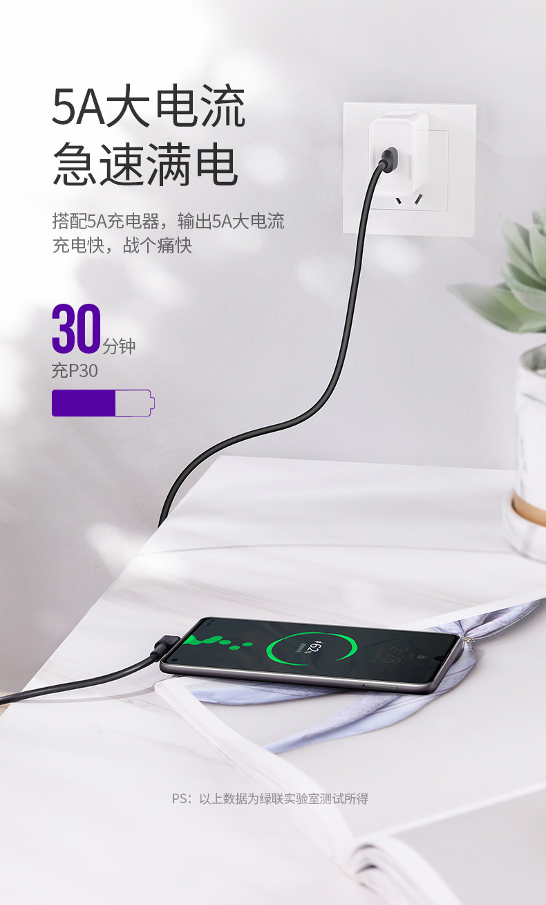 绿联 Кабель данных Type-C локоть 5A Flash Flash-зарядка