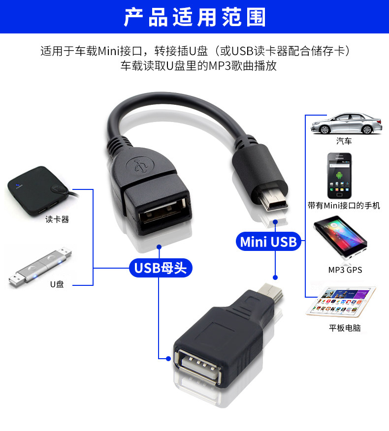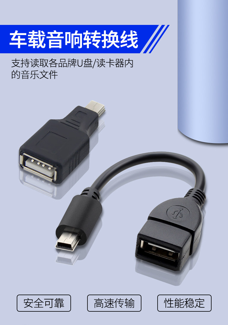 Car U Disk Rotor Mini Mini USB CAR Audio OTG Navigation Converter Зарядка кабеля Hearder Car T -тип штекер