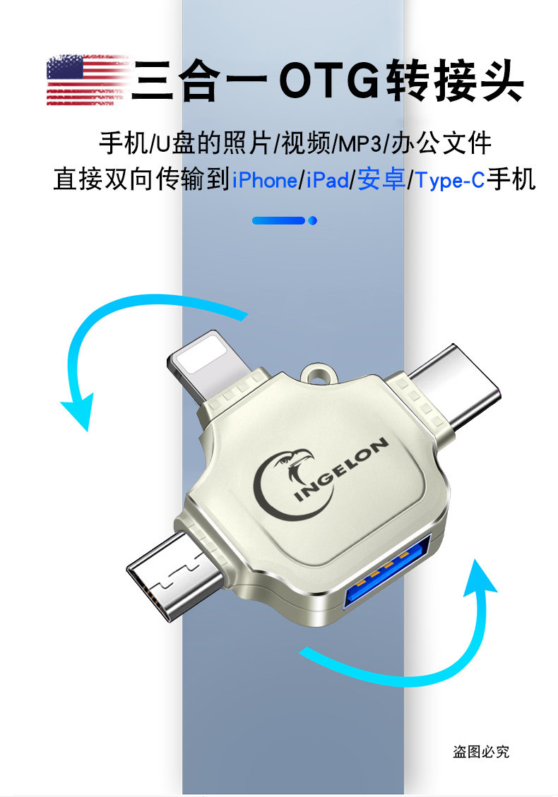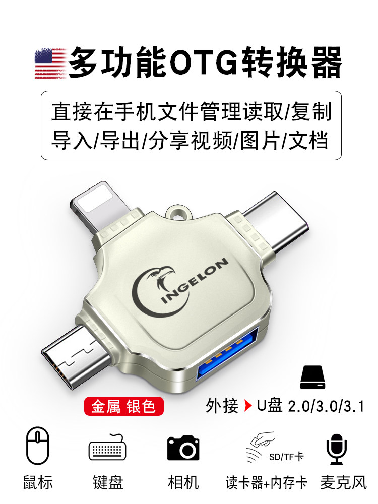Мобильный U -дисковый конвертер OTG Connector Tape Two -In -One Read -Connectivesing Song to V Disk Tapec, чтобы Tepy Turning USB Port Tapy, подходящий для Apple Huawei Ipad планшет TPC Android C