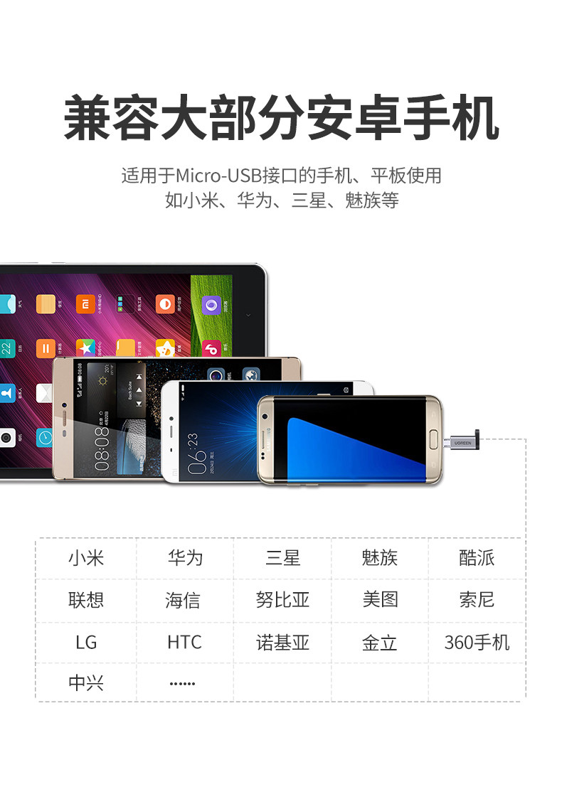 绿联 Micro, huawei, vivo, honor, oppo, samsung, xiaomi, универсальное совместимое зарядное устройство, мобильный телефон, андроид