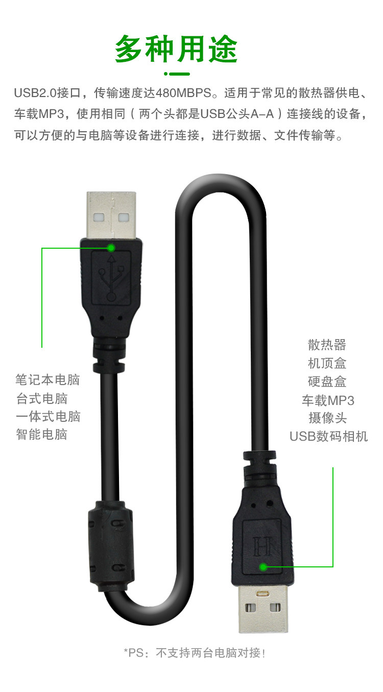 Двойной USB Data Cable Public на двух движущихся жестких дисках на двух концах, длительное конверсионное подключение к радиатору ноутбука 1,5 метра