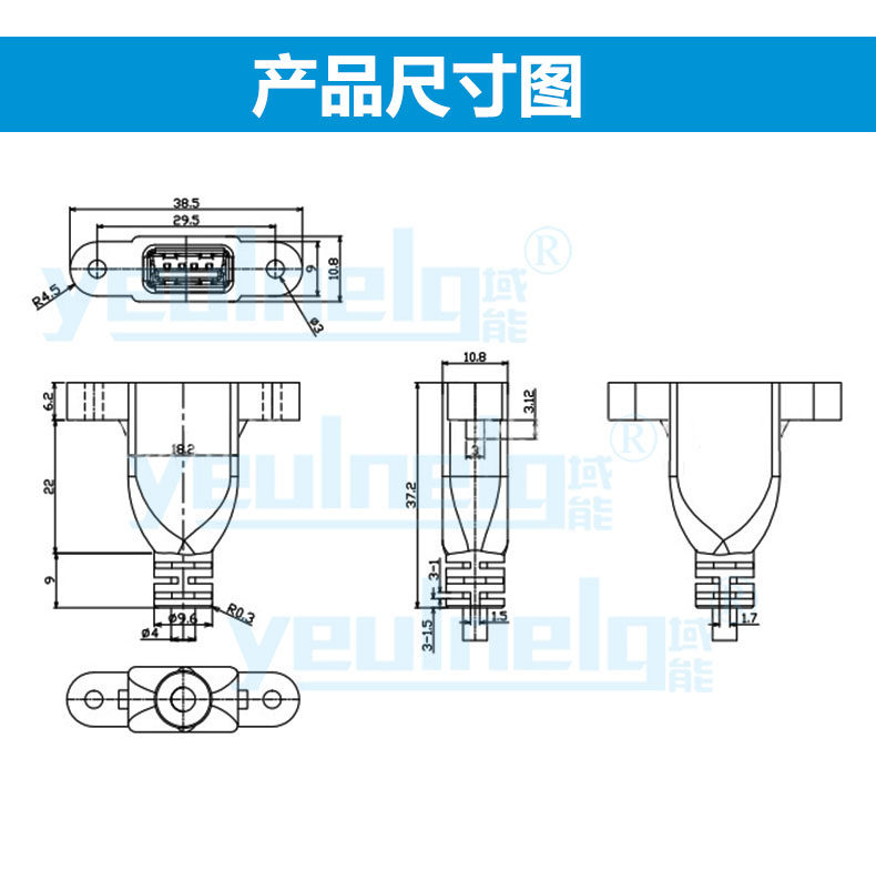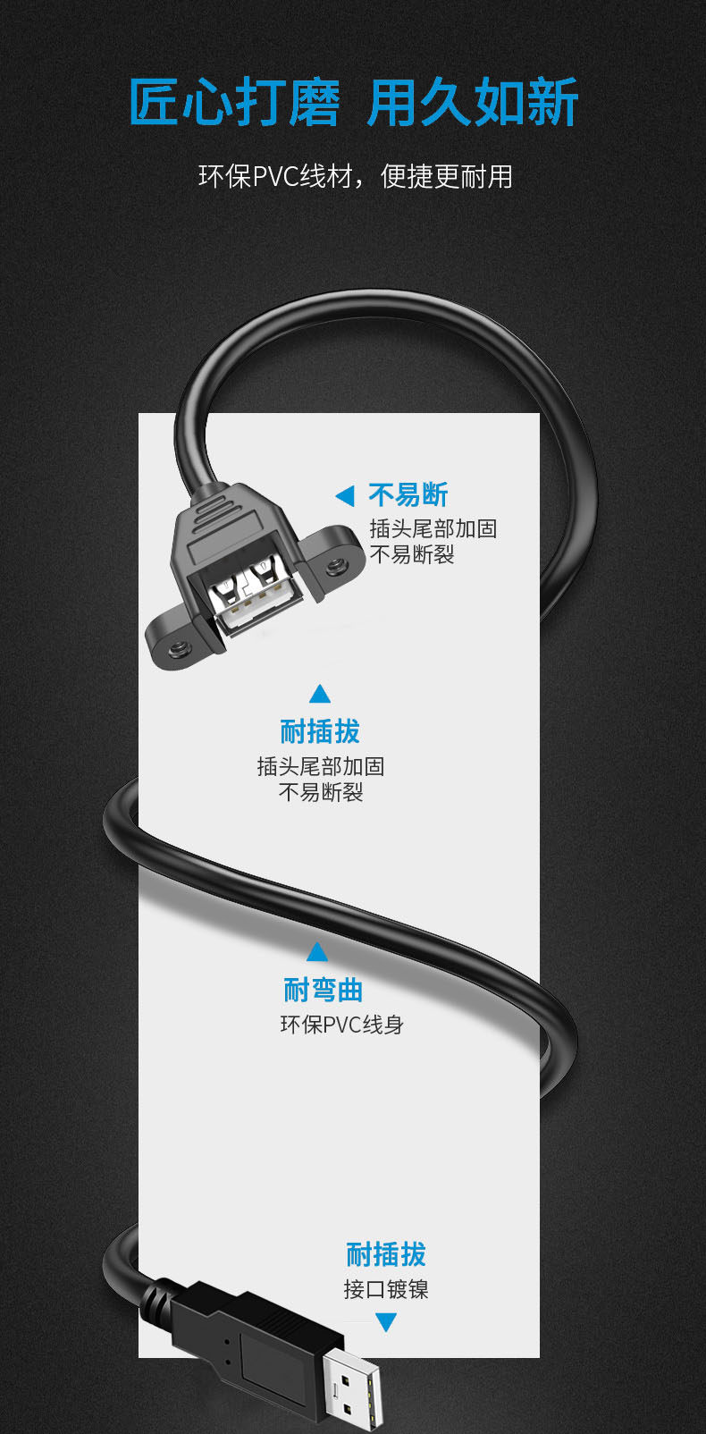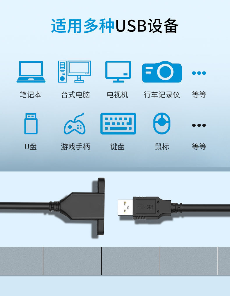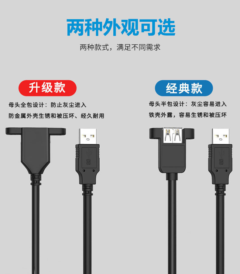 Домен Energy USB3.0 мужской и женский удлинитель, кабель с ушами и винтовые отверстия могут быть зафиксированы USB2.0 Женщины -женские серьги, основной панель для мобильного телефона USB -дисково