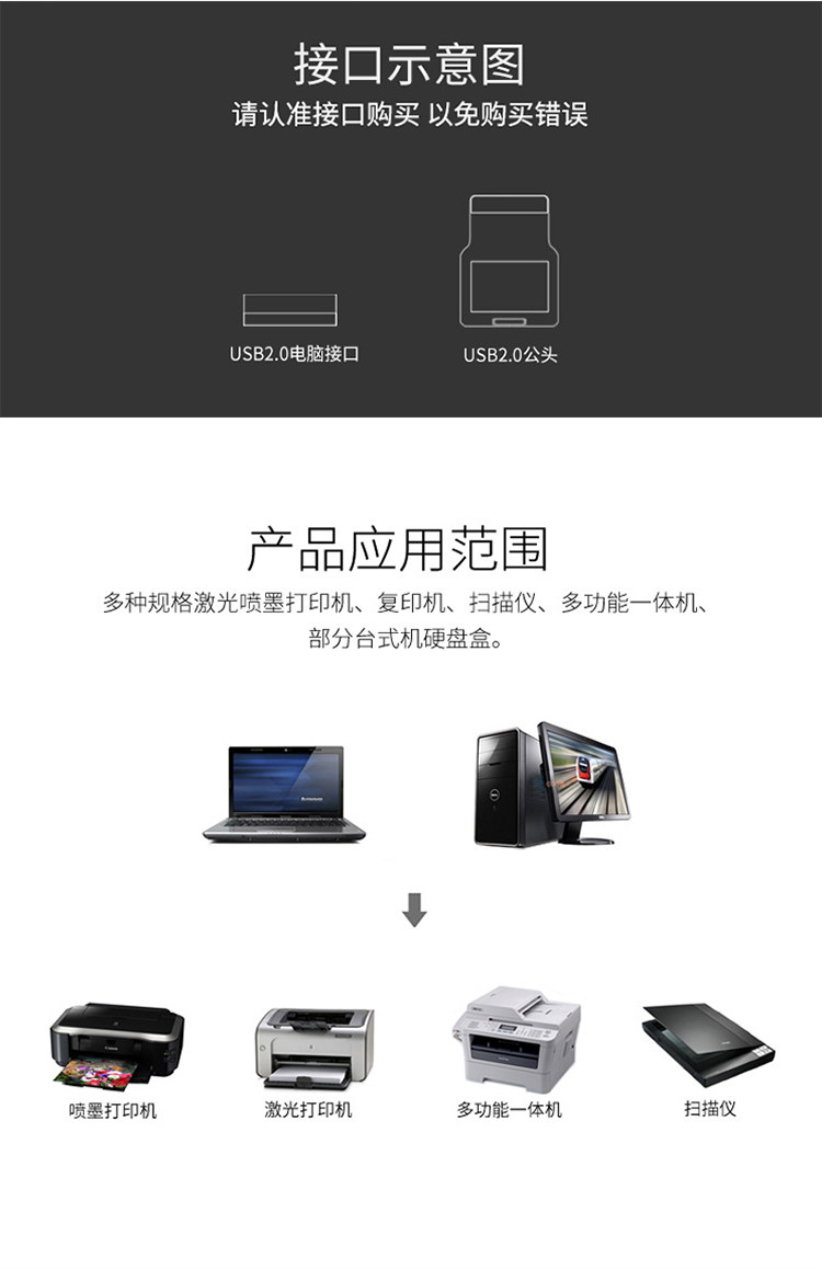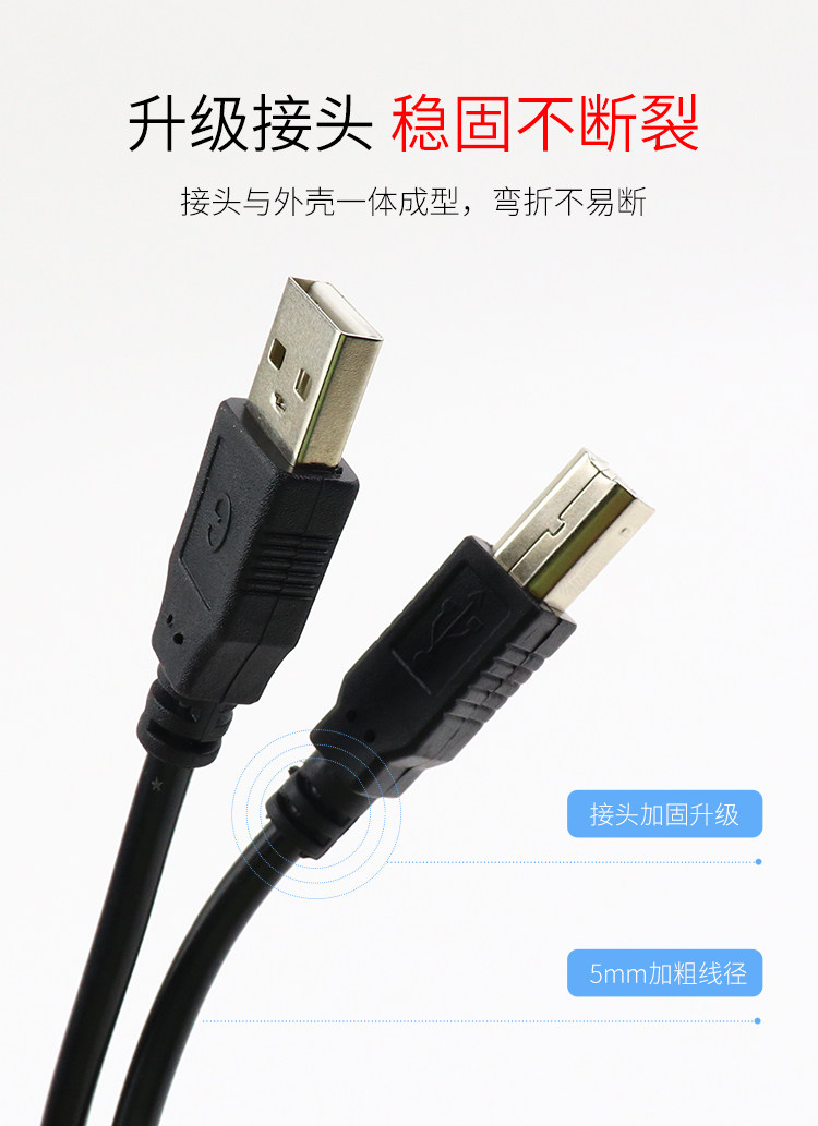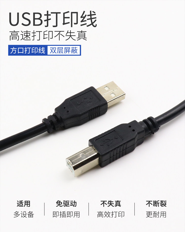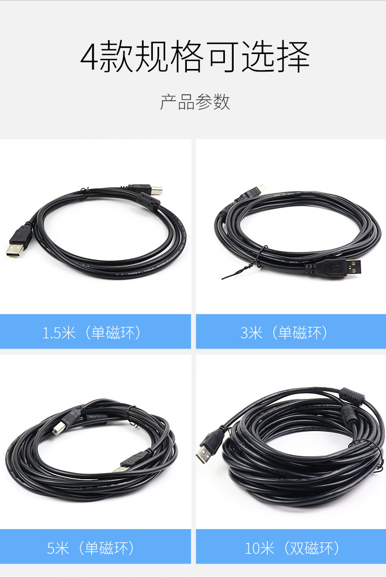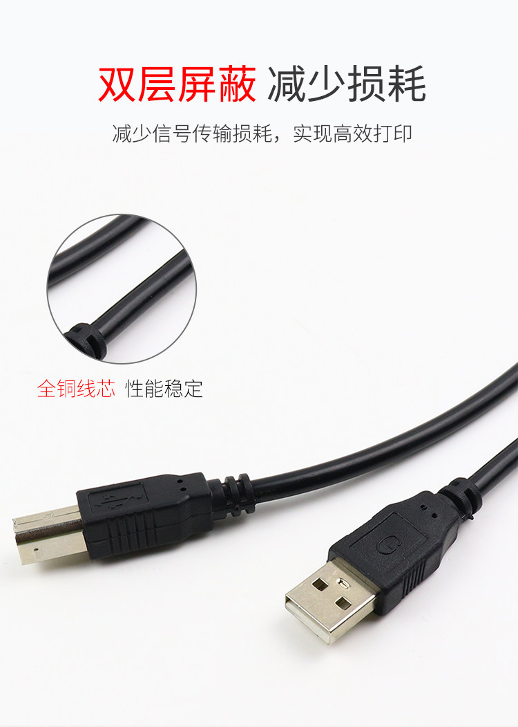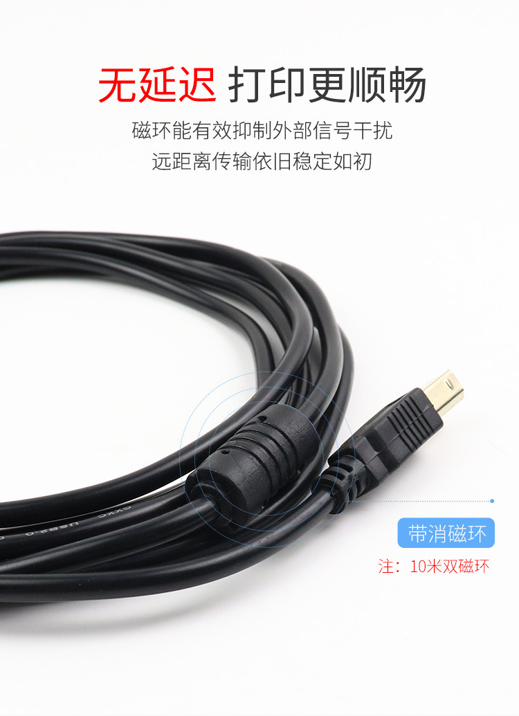 Кабель для передачи данных принтера USB2.0, высокоскоростной соединительный кабель с квадратным портом, кабель-адаптер A-папа-B с экранированным магнитным кольцом