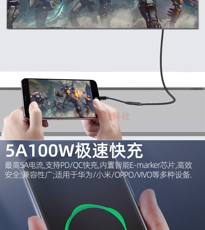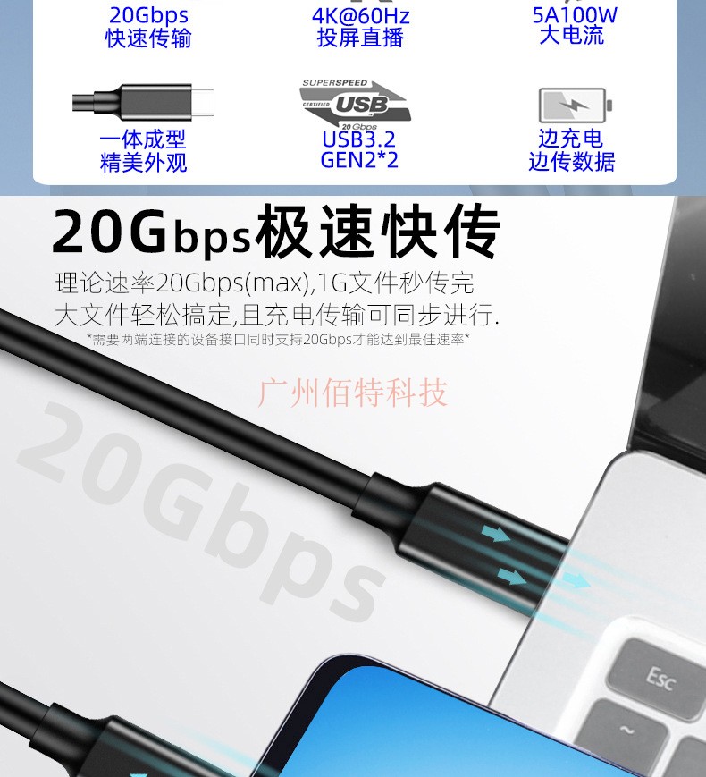 Gen2*2 Кабель данных жесткого диска тип-C двойная головка USB3.2 Мобильный компьютер PD100W Линия быстрого зарядки 4K Экран выстрела