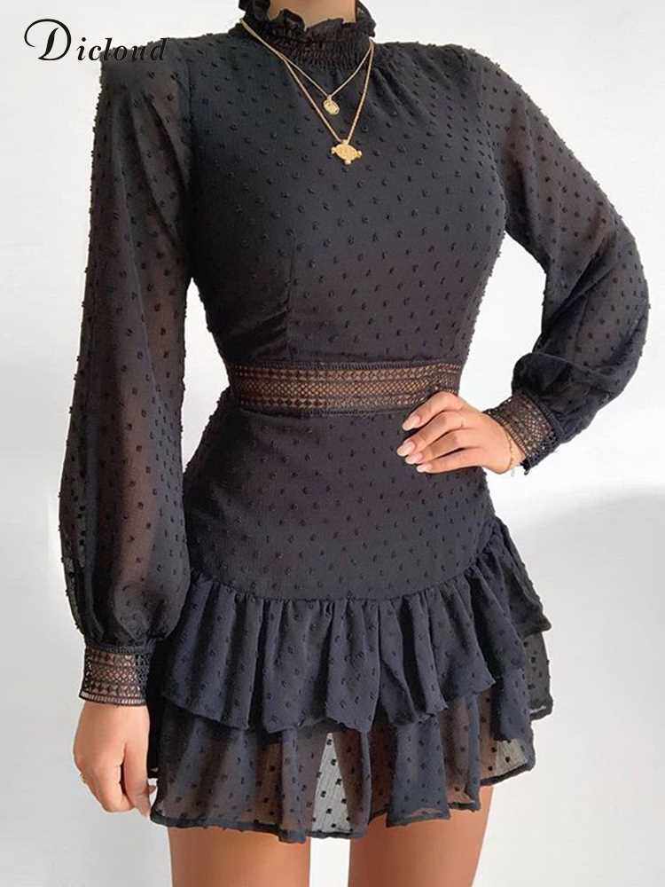 Dicloud Elegant Hollow Out Black Dress Женщины Ser Dot Long