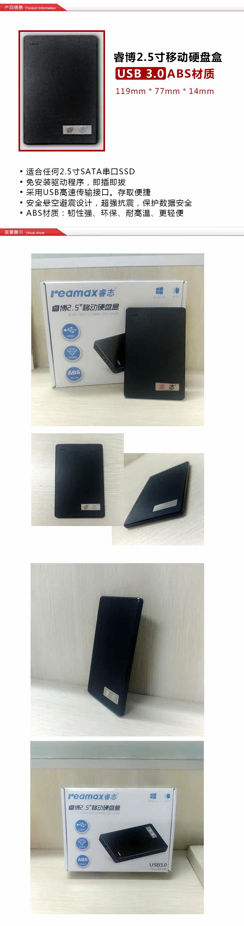 Ruizhi 2,5 -Inch Mobile Hard Disk Box USB3.0 Серийная ноутбука SATA3 Сейсмическое сопротивление Высокая температура