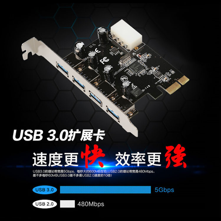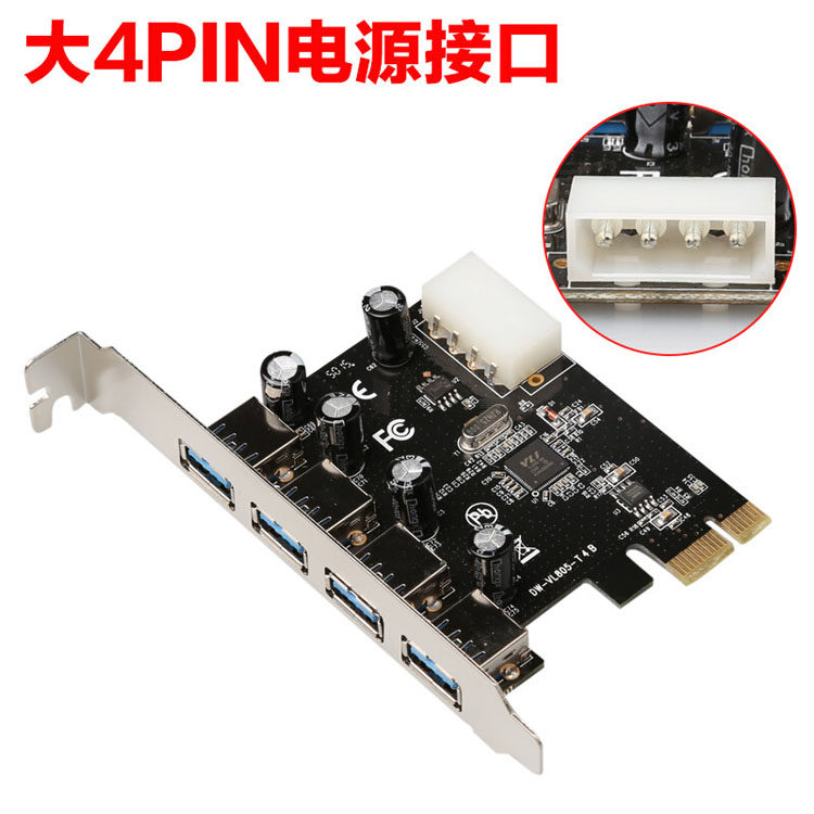PCI-E TO USB3.0 Расширение карты настольной настольной таблицы с четырьмя рядами PCI-E в USB3.0.