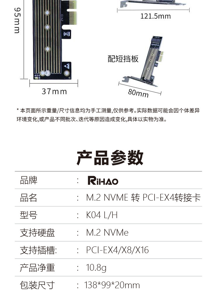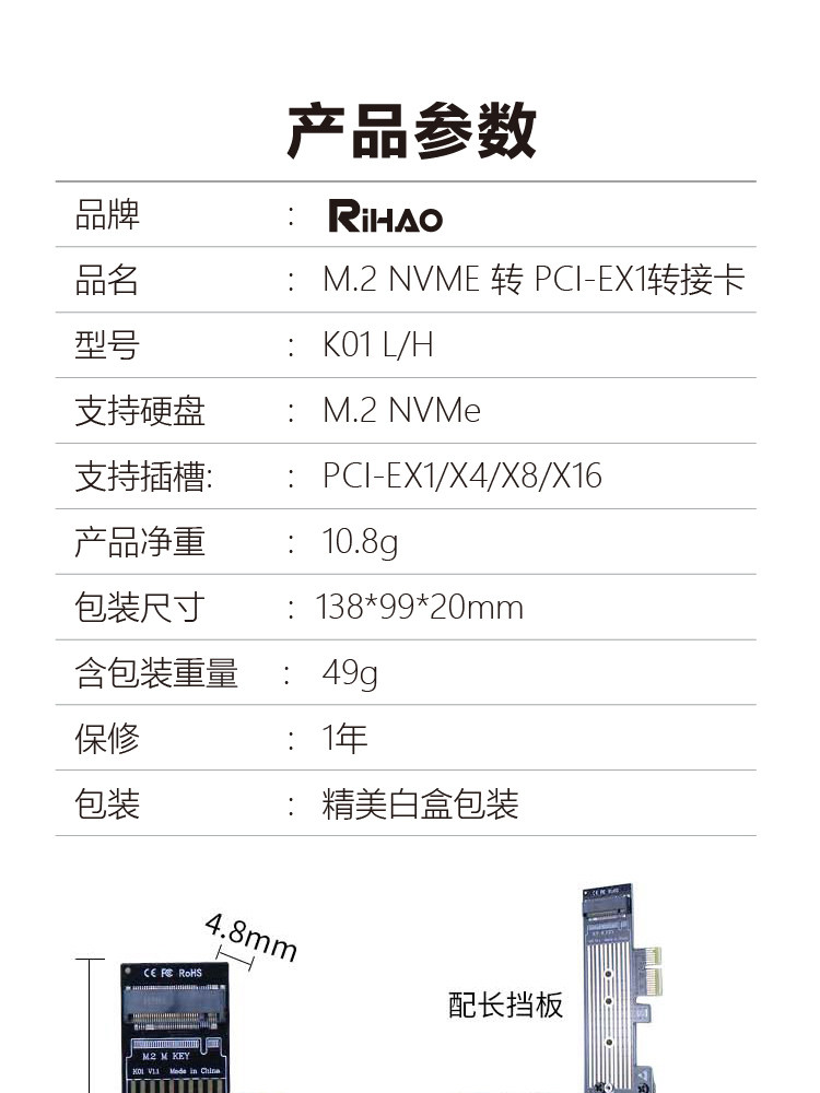 Rihao M.2 до PCI-E4.0 Адаптерная карта NVME Твердовое расширение жесткого диска карта PCIE X1 в M2 Модификация Universal