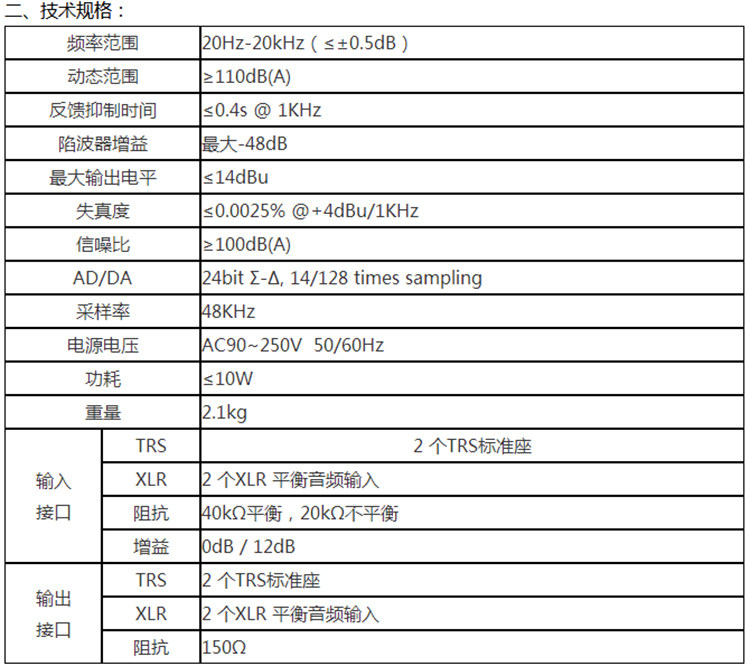 1. Быстро автоматически отзыв о подавлении, обнаружение времени воть;≤0.4s @ 1KHz