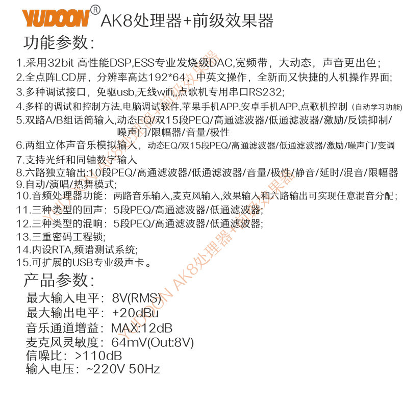 YUDOON AK8 Профессиональная стадия k Песня эффект KTV Предварительный цифровой Hyber Housewara OK