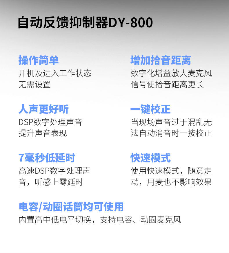 Новый ключ DY800 Aquarius KTV Профессиональная обратная связь на стадии встречи Microphone One -Click Automatic Anti -Scream