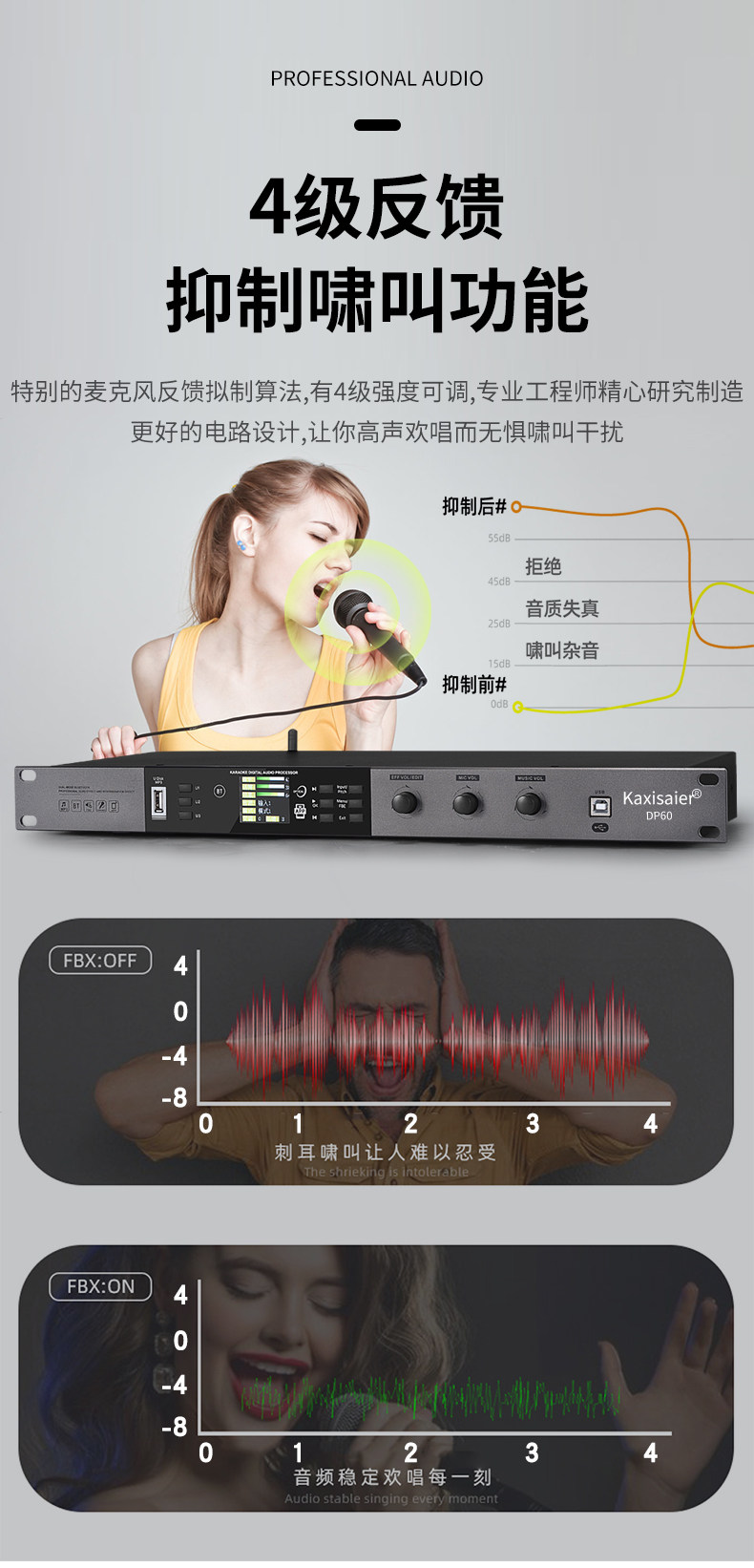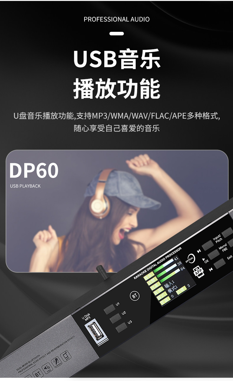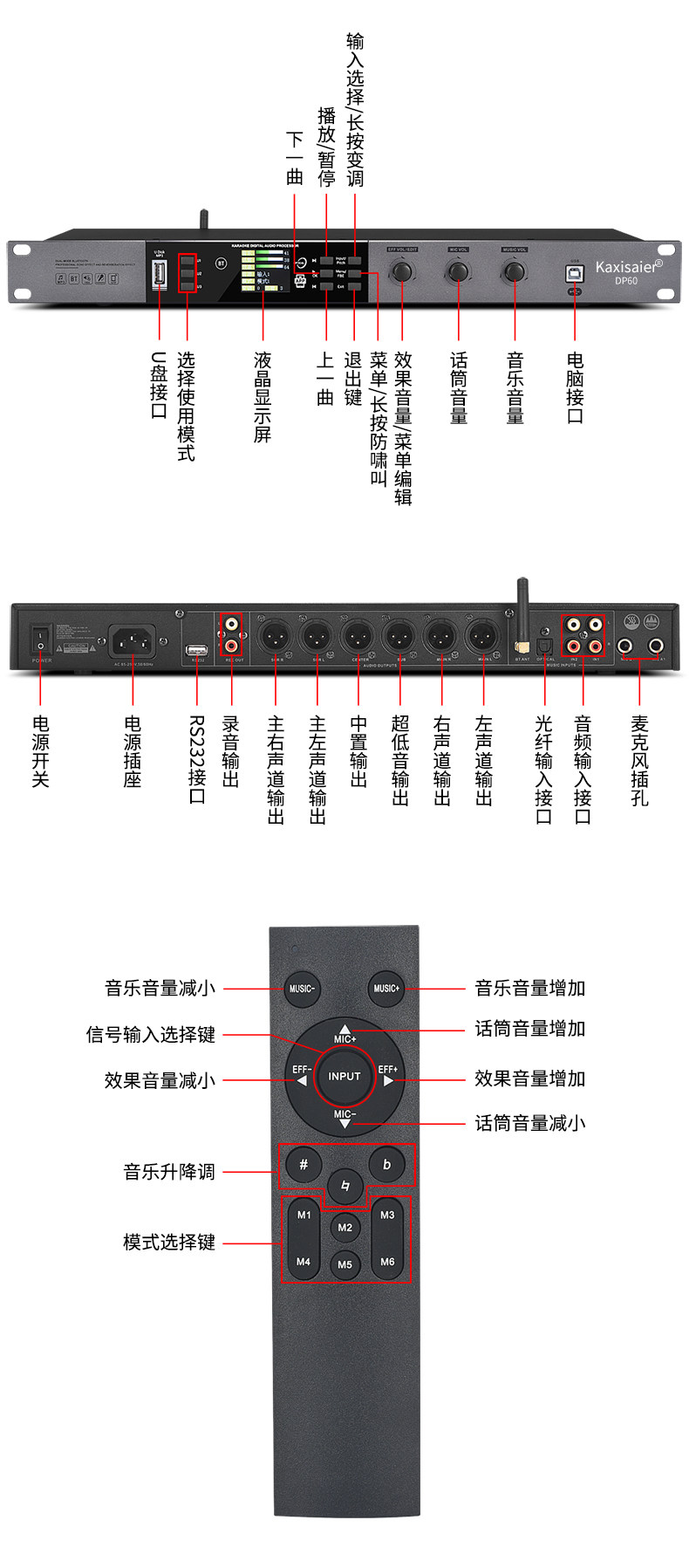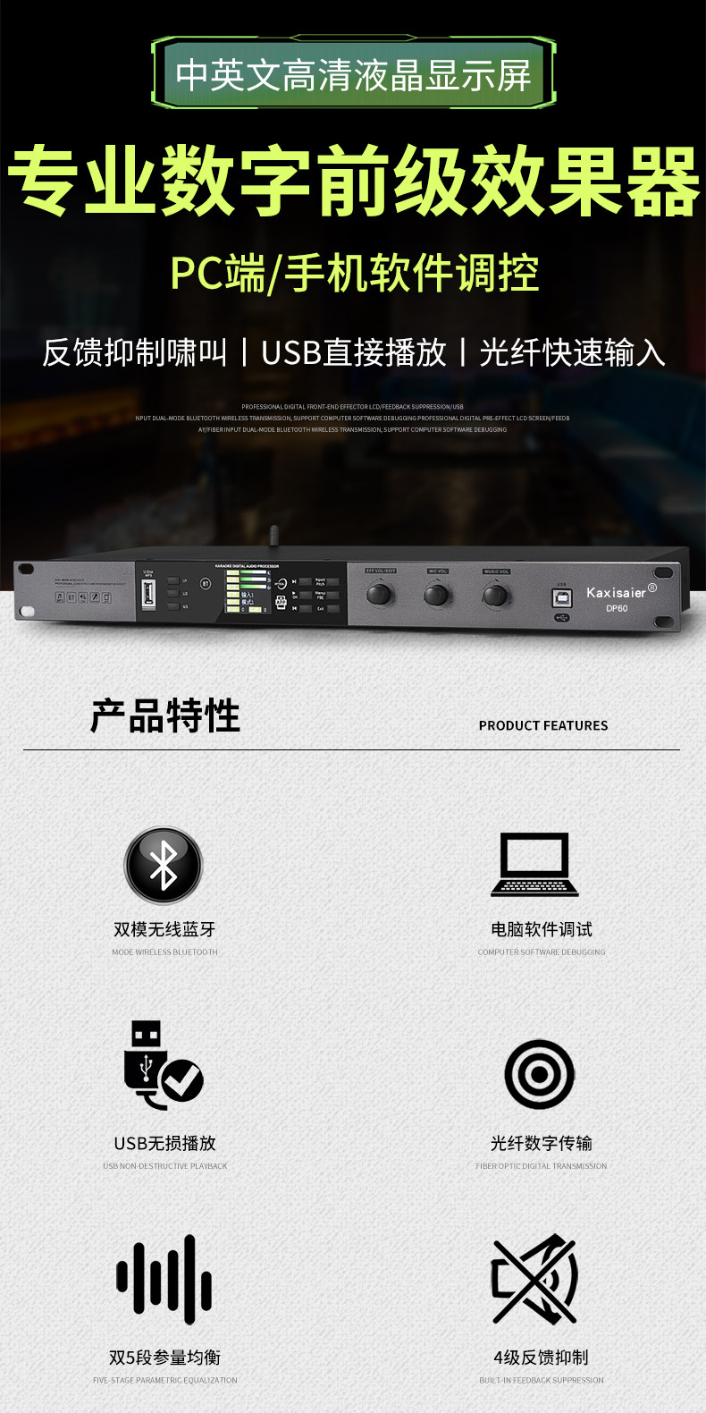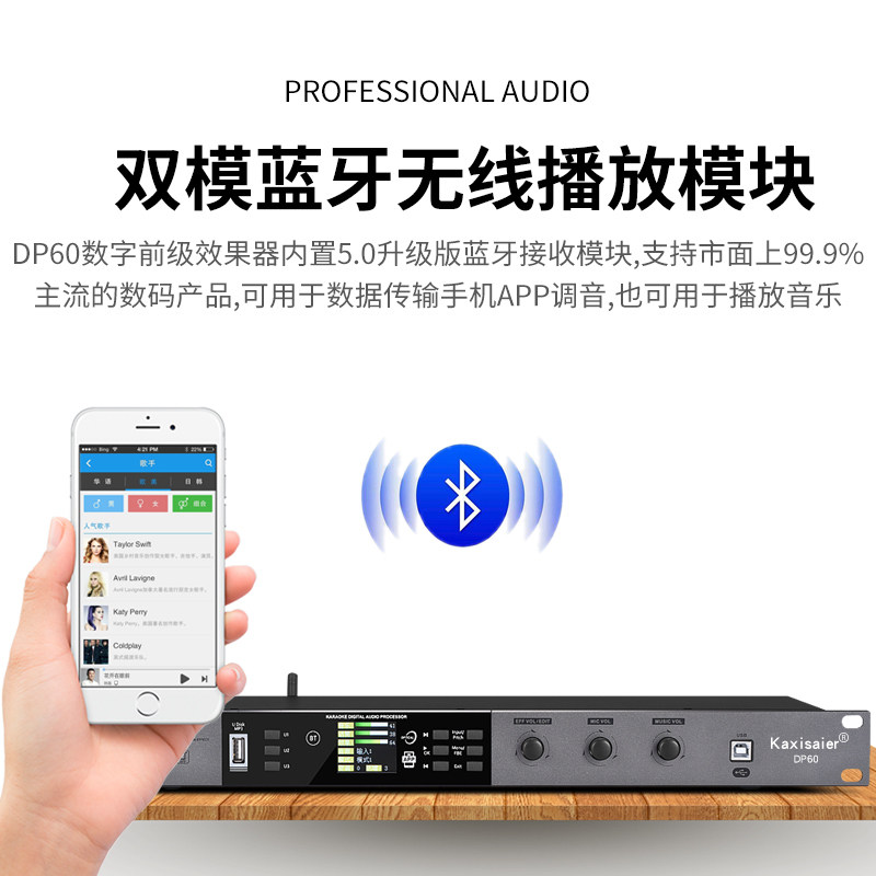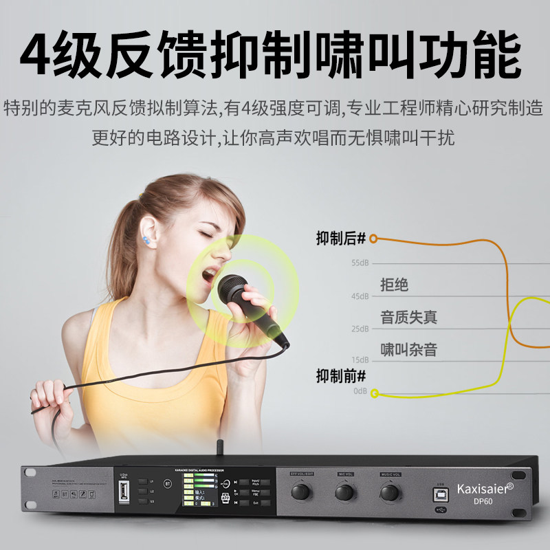 KAXISAIER DP60 Предварительный эффект Конференции Конференция Стадия выполнения свадебной семьи K Song Bar KTV Аудиопроцессор Ингибиторы обратной связи компьютерное программное обеспечение Bluetooth Приложение мобильного телефона отладки