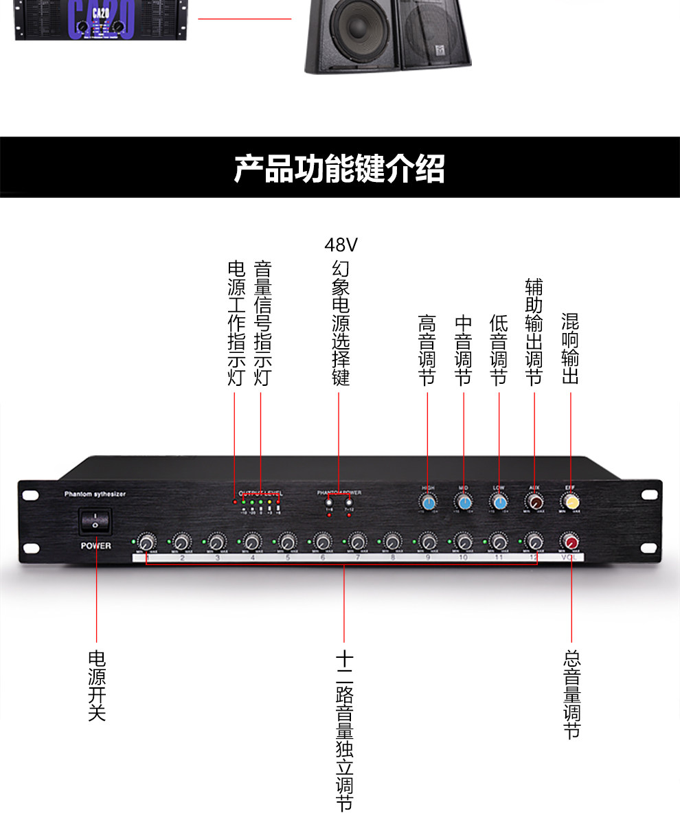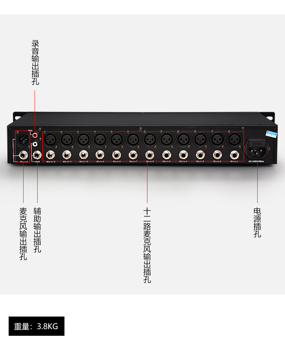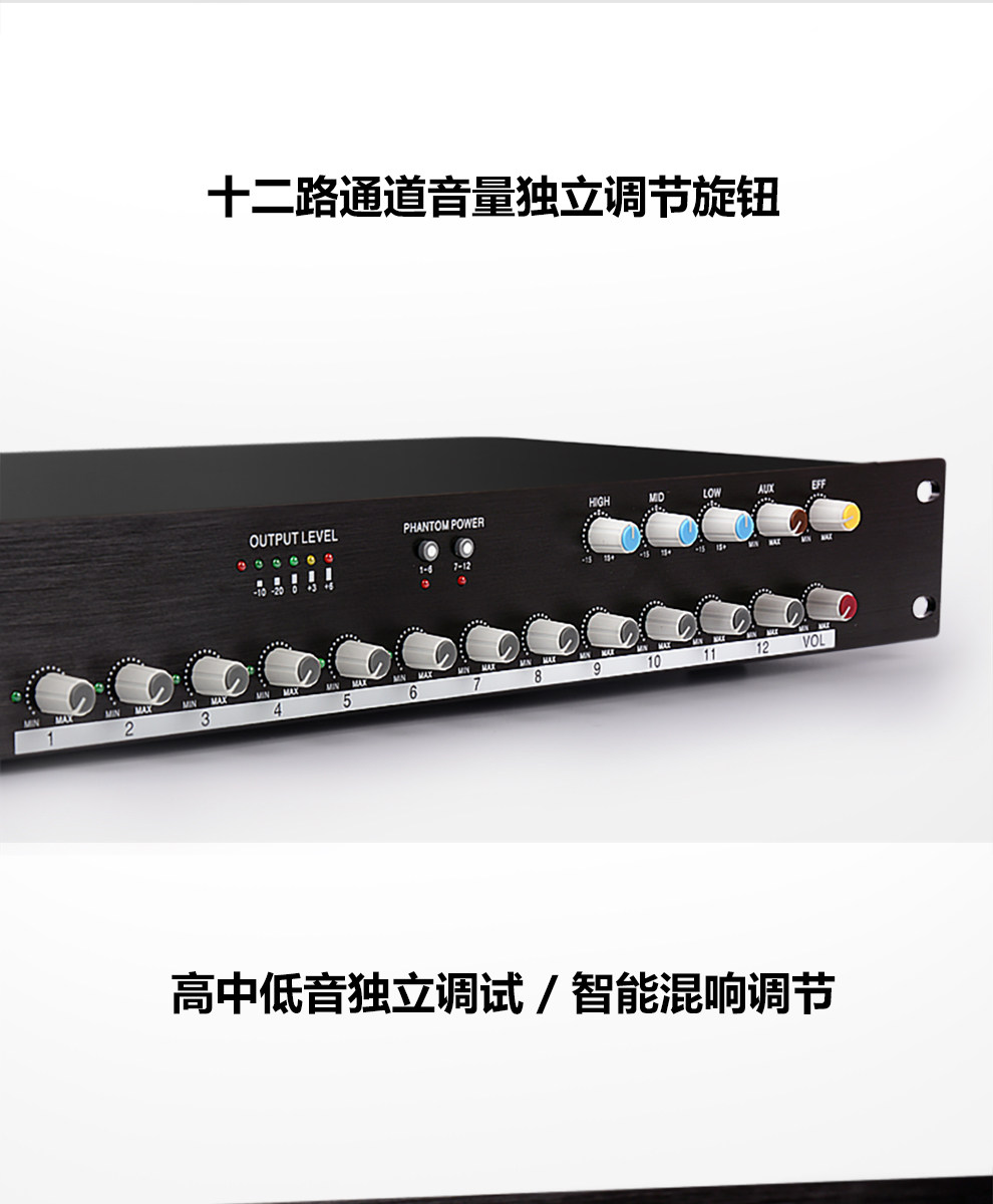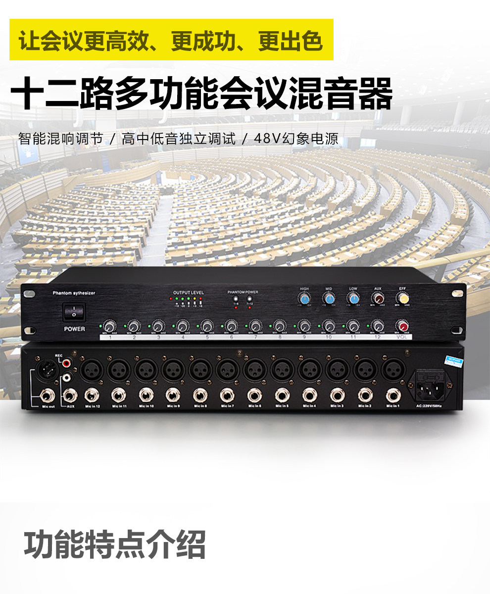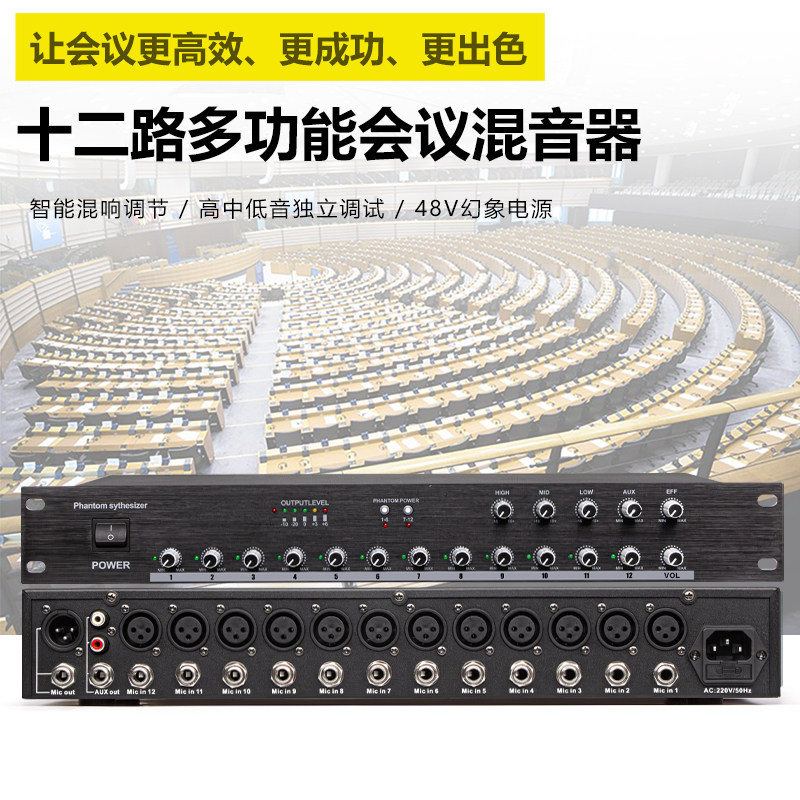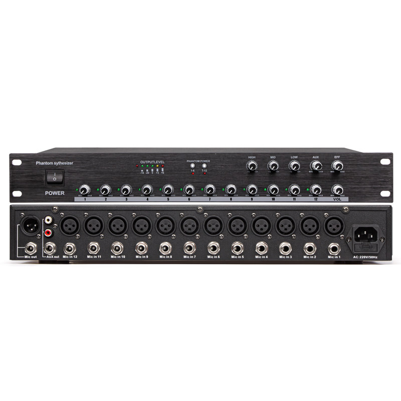 Профессиональный 12 -пуховой аудио -концентратор с 48 В фантома, инженерный микшер, проводной конференц -микрофон распределитель