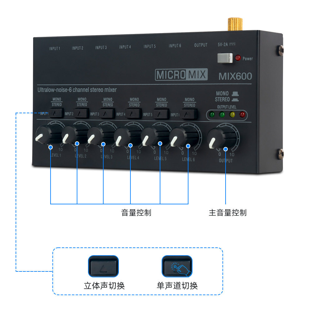 Многоканальный стерео-аудио микшер живой микрофон 6-канальный переключатель миксера Низкий шум.