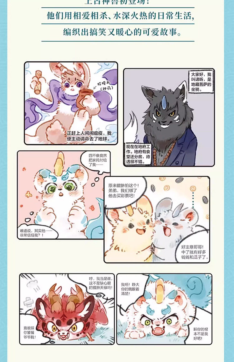 Это творческий комикс, еще один шедевр от Feirenzai Studio, рассказывающий о веселой современной жизни мифических зверей из «Классики гор и морей».Это супермилый и суперпопулярный сериал на Sina Weibo. Миллионы фанатов без ума от этого. Он полон смеха и милоты.