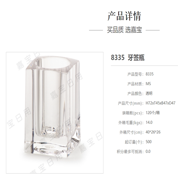 Jiabao 8335 8336 Акриловая зубочистка бутылка для хлопчатобумажной банки для стоматологической визы дома ежедневная бутылка зубочистка