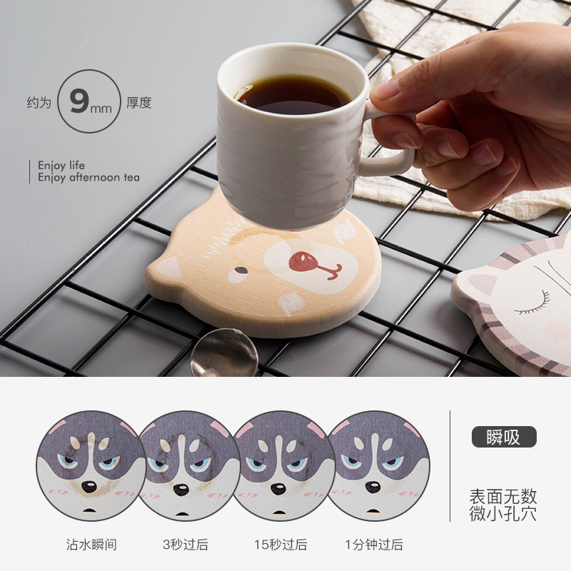 Креативная натуральная быстросохнущая мультяшная чайная чашка, хорошо впитывает воду, защита от ожогов