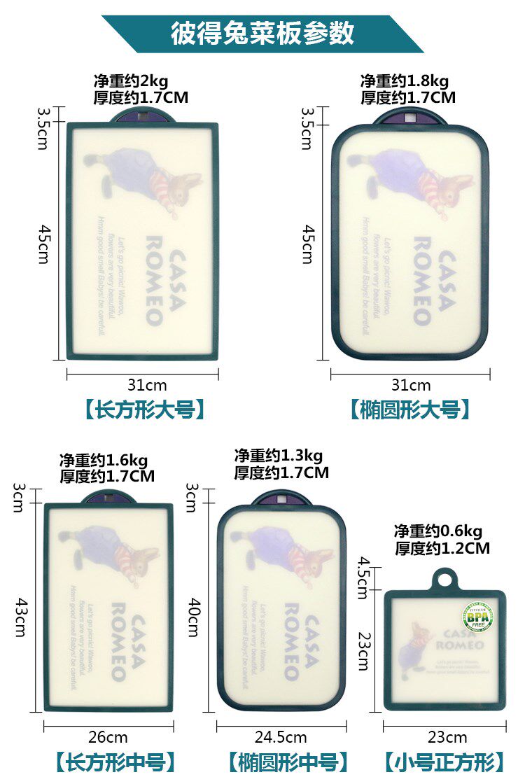 Южнокорейская питер кролик -кролика Катет Трекрей из семейной антибактериальной плесени ортодоксальная пластиковая доска детское питание