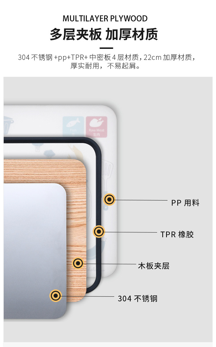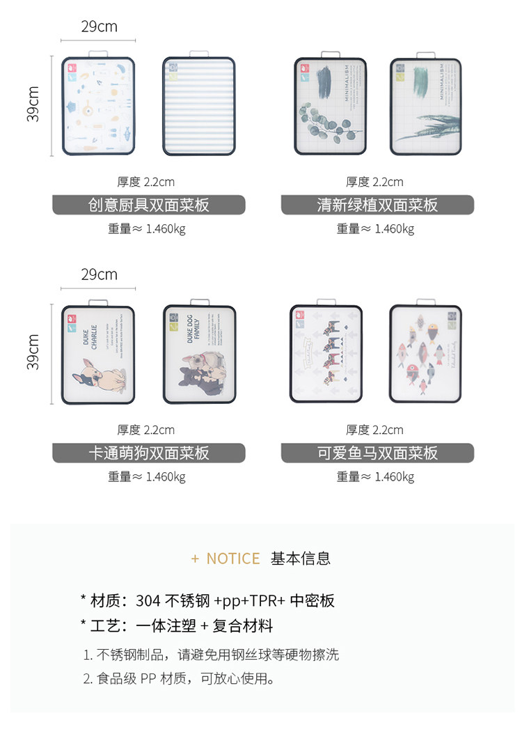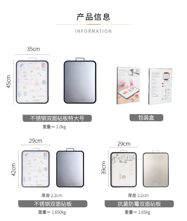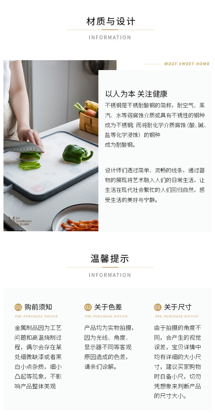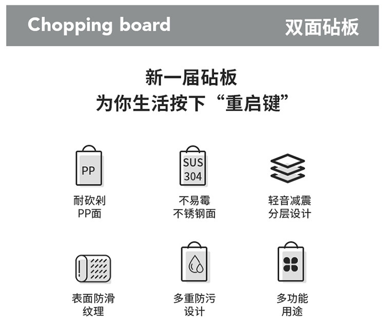 摩登主妇 Креативная двусторонная разделочная доска, антибактериальная световая панель из нержавеющей стали