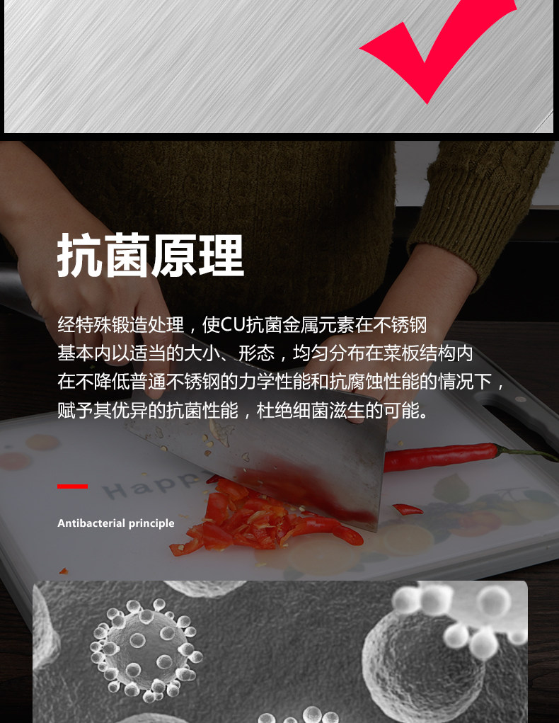 Антибактериальная пластиковая двусторонная разделочная доска из нержавеющей стали, Германия