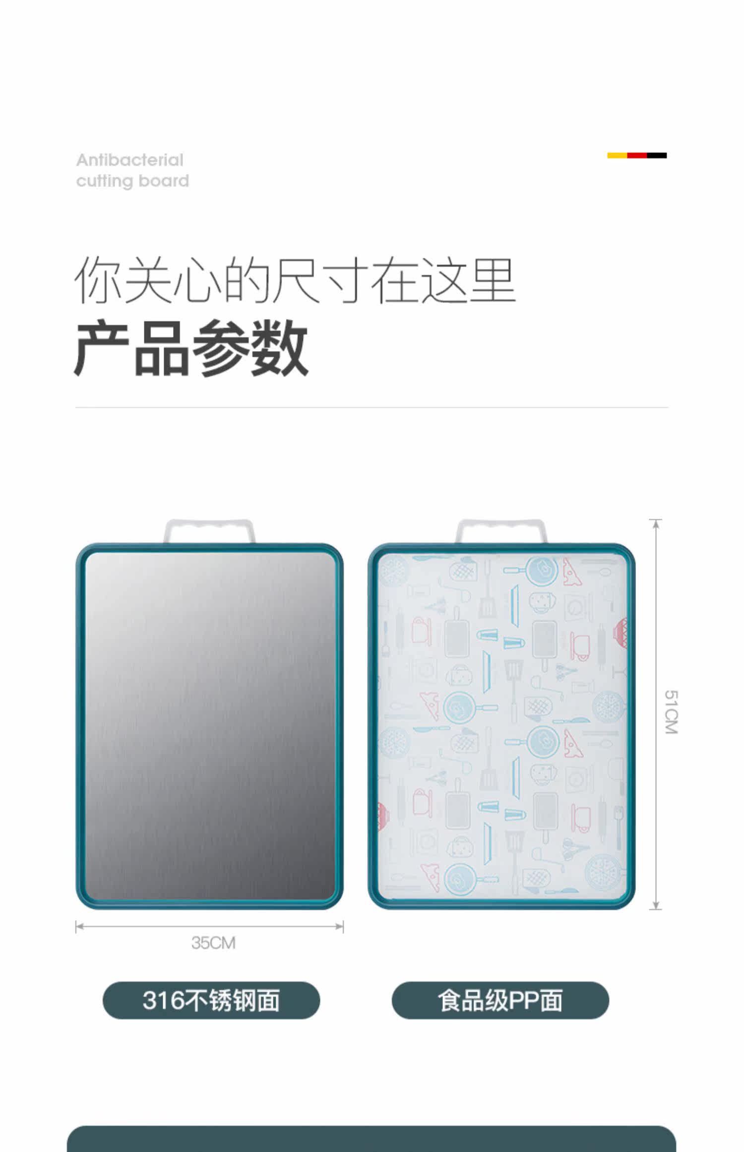 Антибактериальная пластиковая двусторонная разделочная доска из нержавеющей стали, Германия, увеличенная толщина