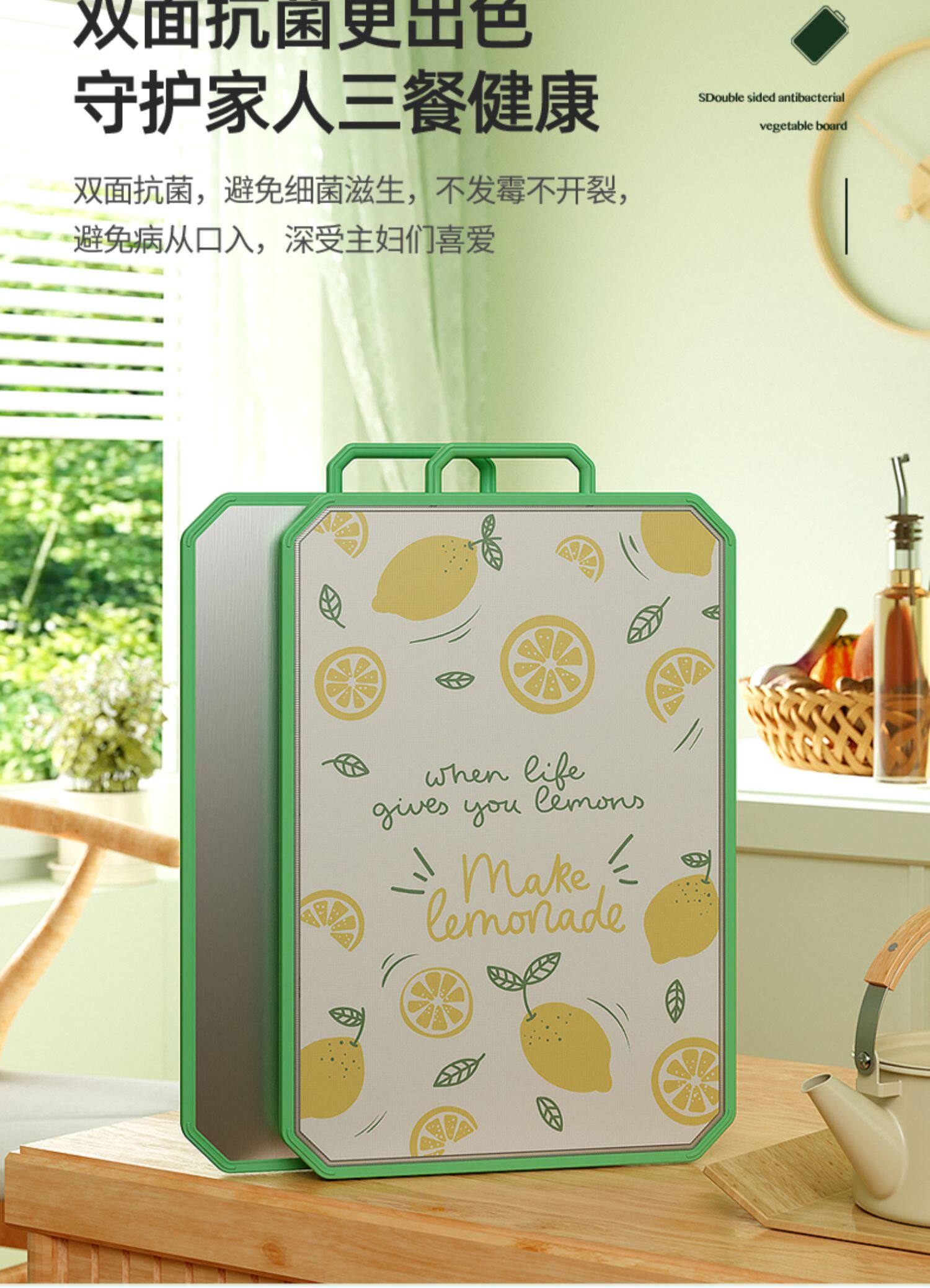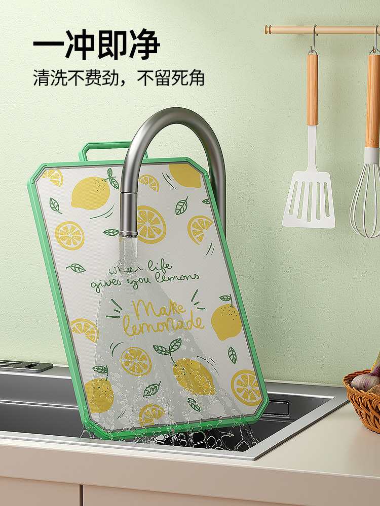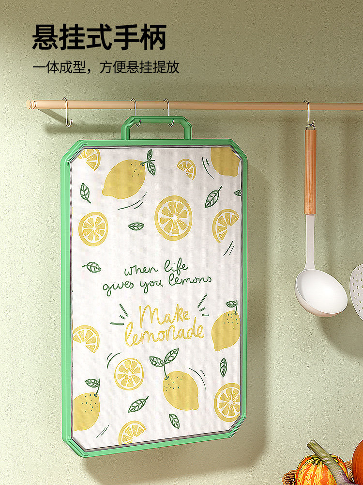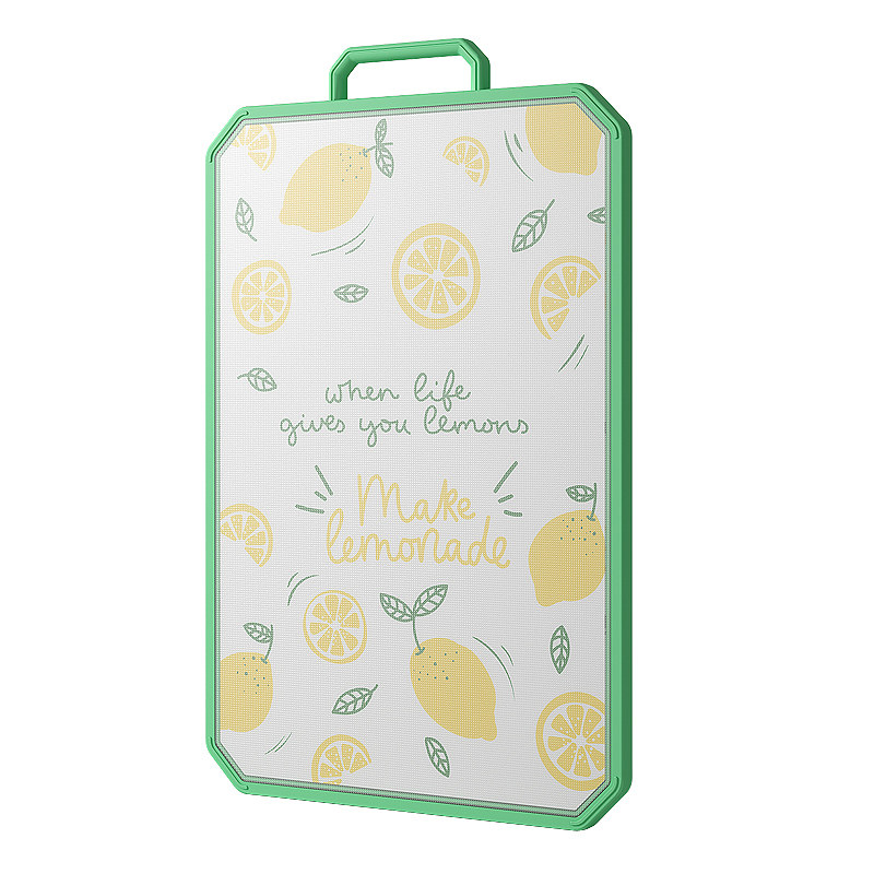 - [Толстая модель] 304 антибактериальная нержавеющая сталь+PP Двухсторонняя режущая плата (зеленый цвет с большим фруктом)