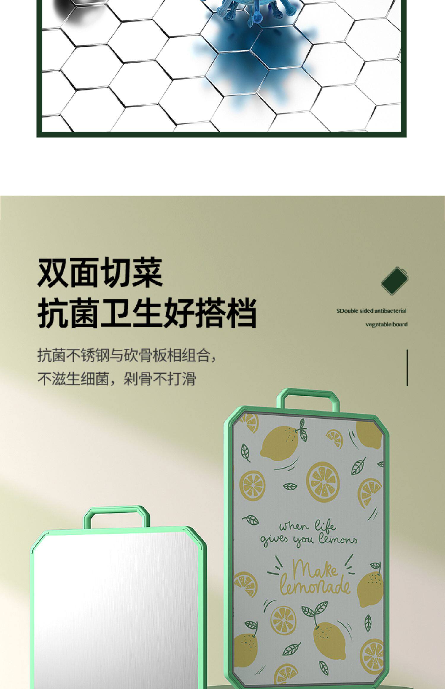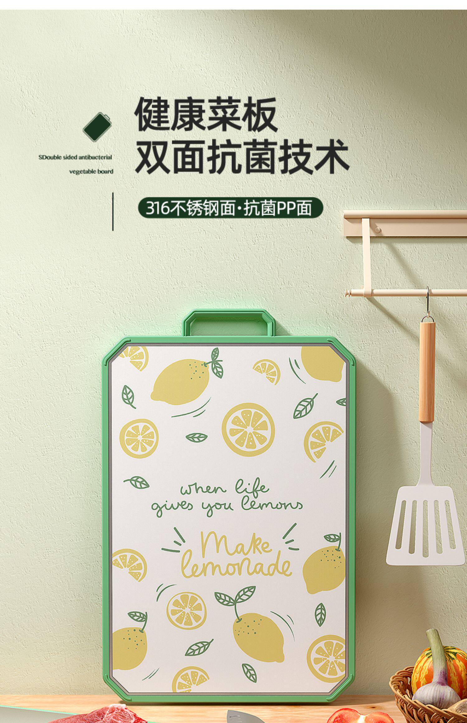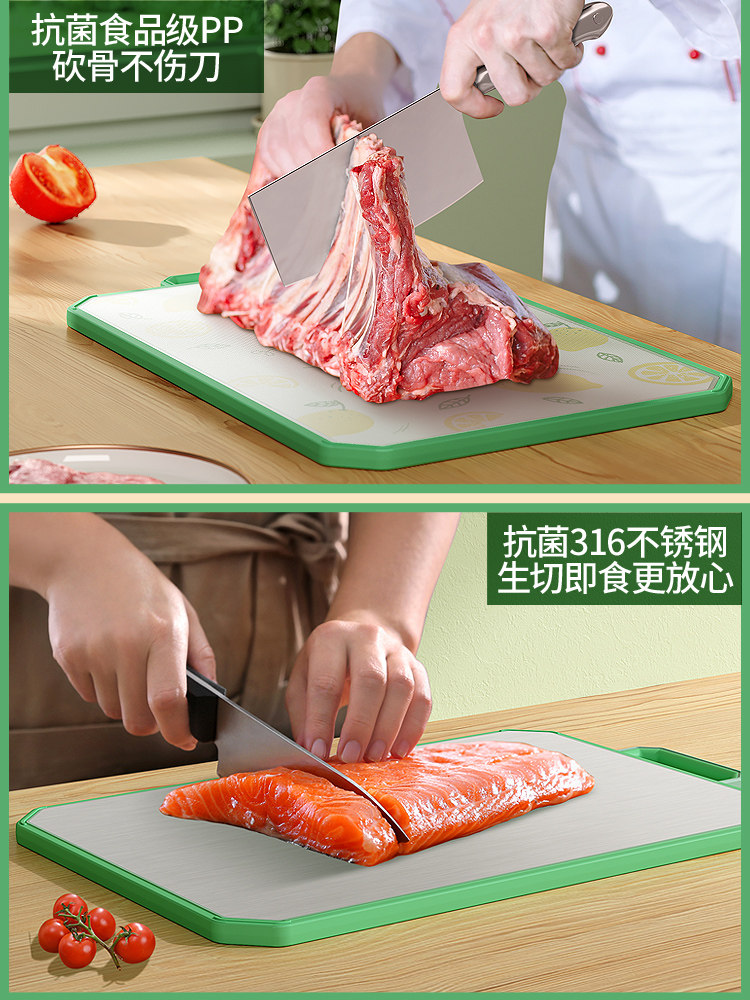 - [Флагман] 316 Двойная антибактериальная 99%нержавеющая сталь+PP Двухсторонняя режущая доска (зеленый средний фрукт)