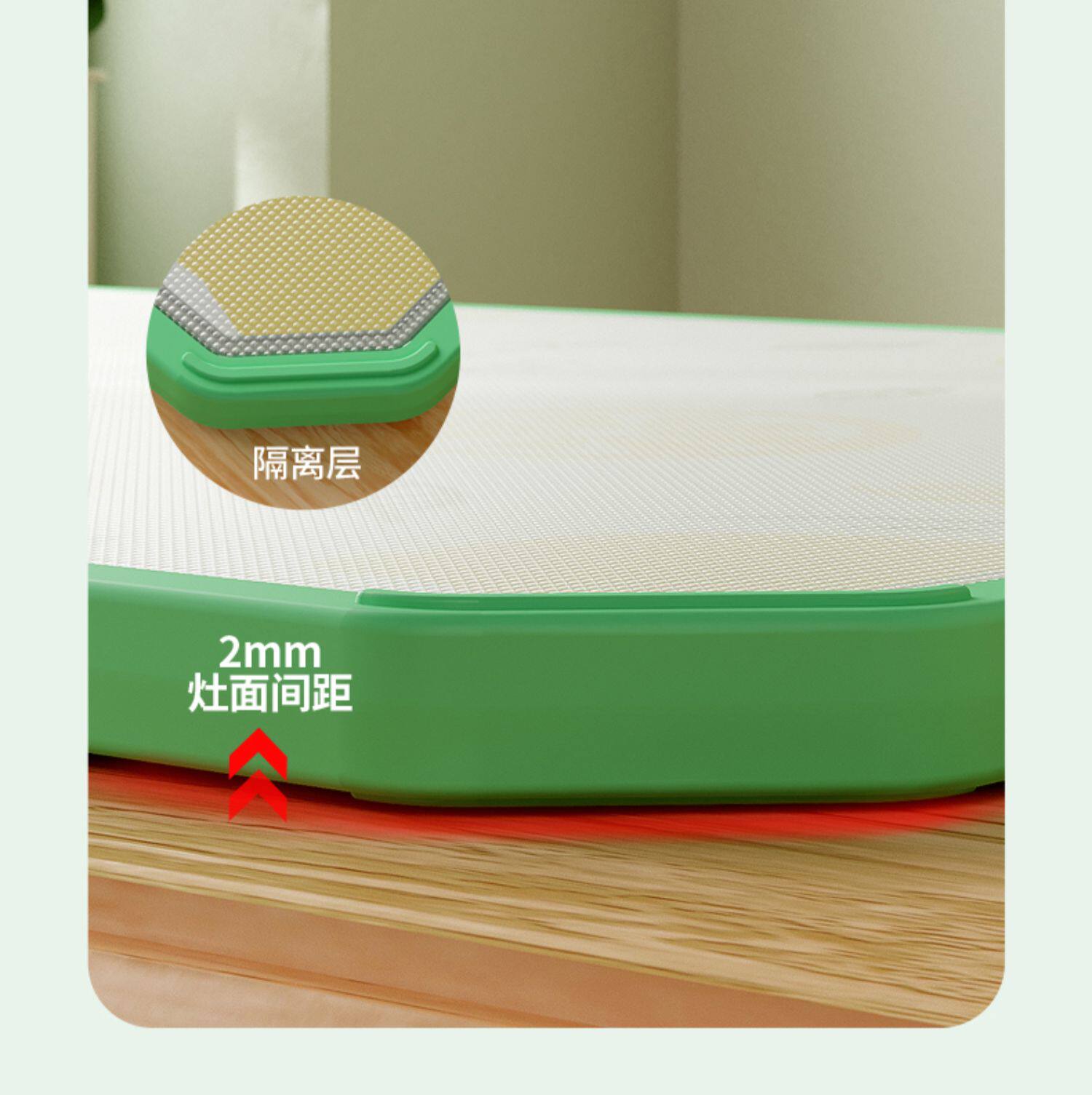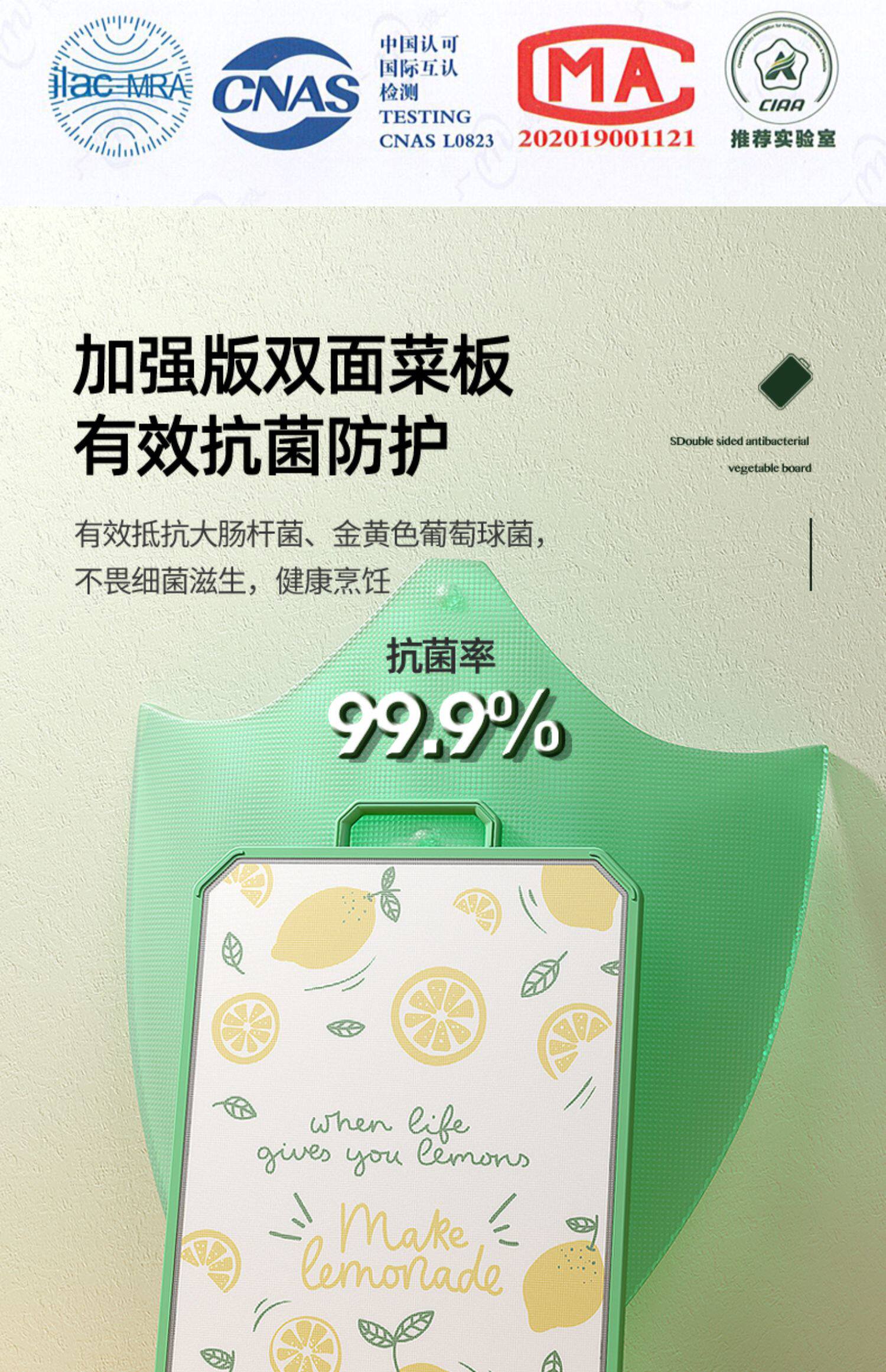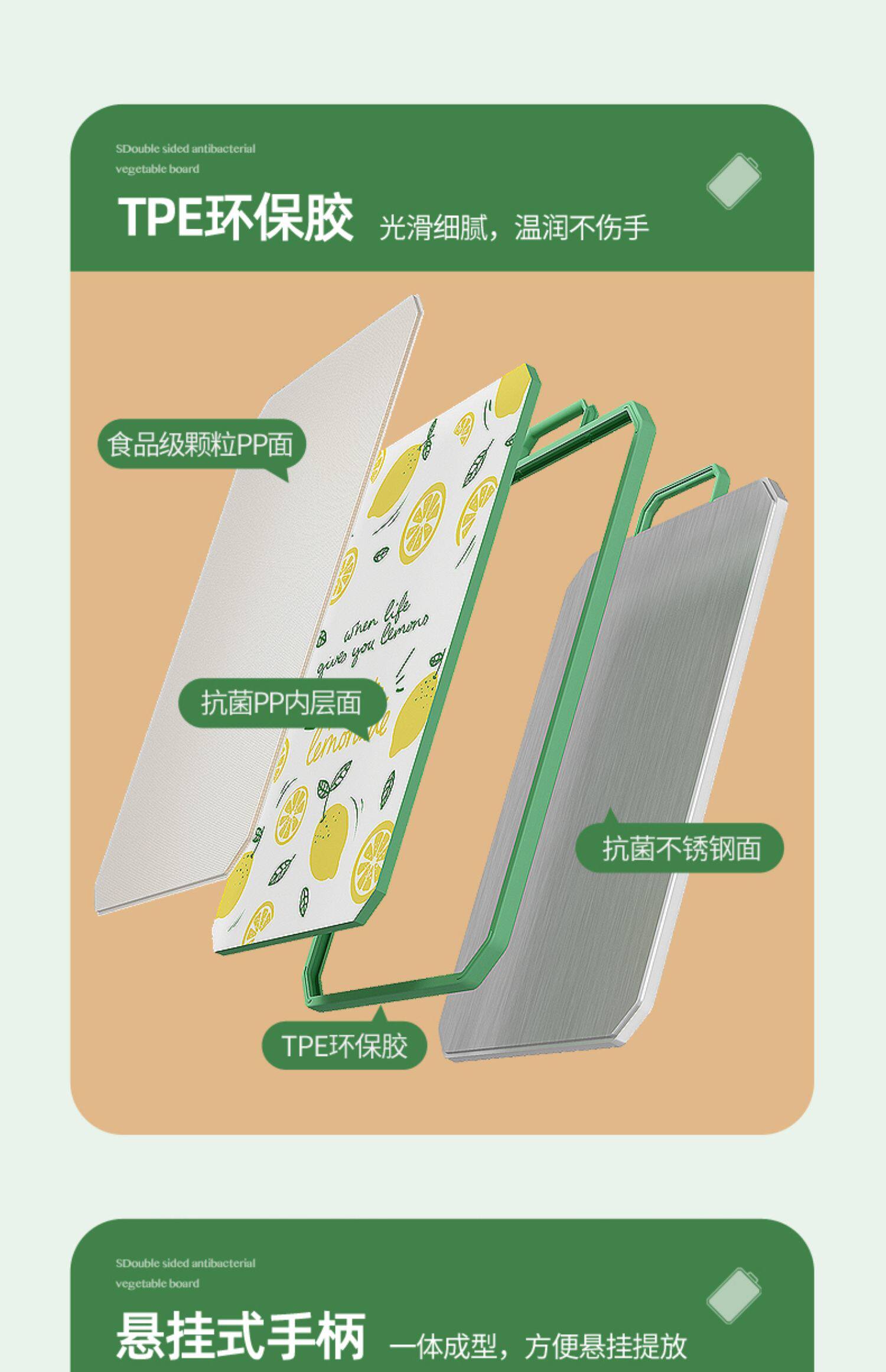 - [Толстая модель] 304 антибактериальная нержавеющая сталь+PP Двухсторонняя режущая плата (зеленый цвет среднего фруктового тела)