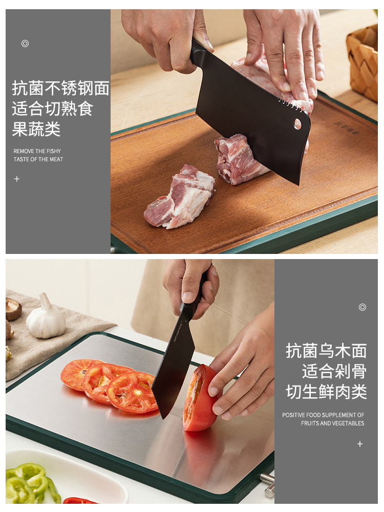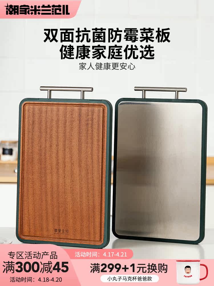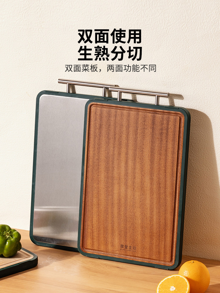 摩登主妇 Антибактериальная двусторонная разделочная доска из нержавеющей стали из сандалового дерева