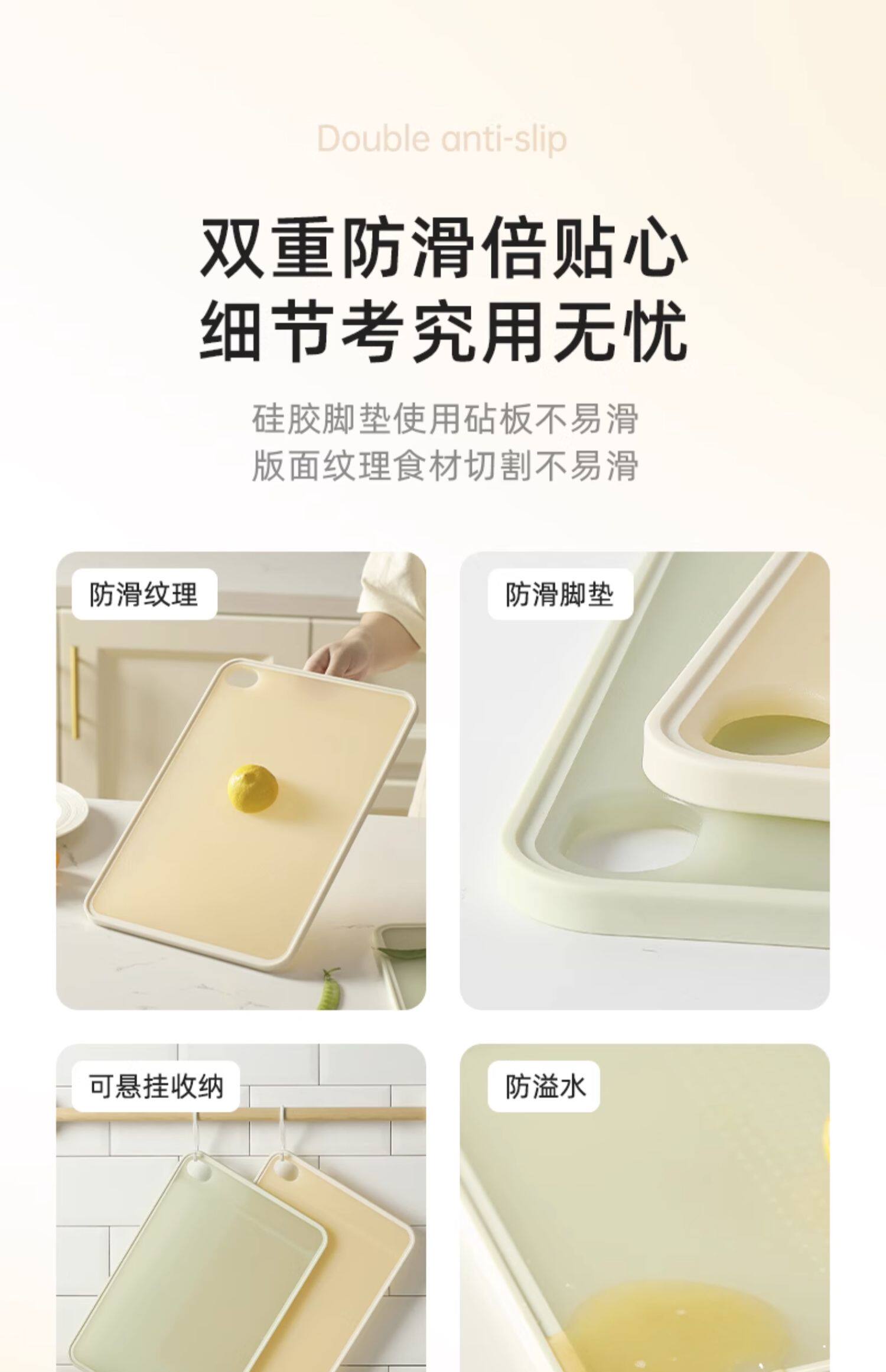 Проверка с разрезание, антибактериальная и плесень -защищенная пластиковая пластиковая доска вырезающая доска фруктовых лезвий дополнительная пищевая липкая панель кухонная режущая доска