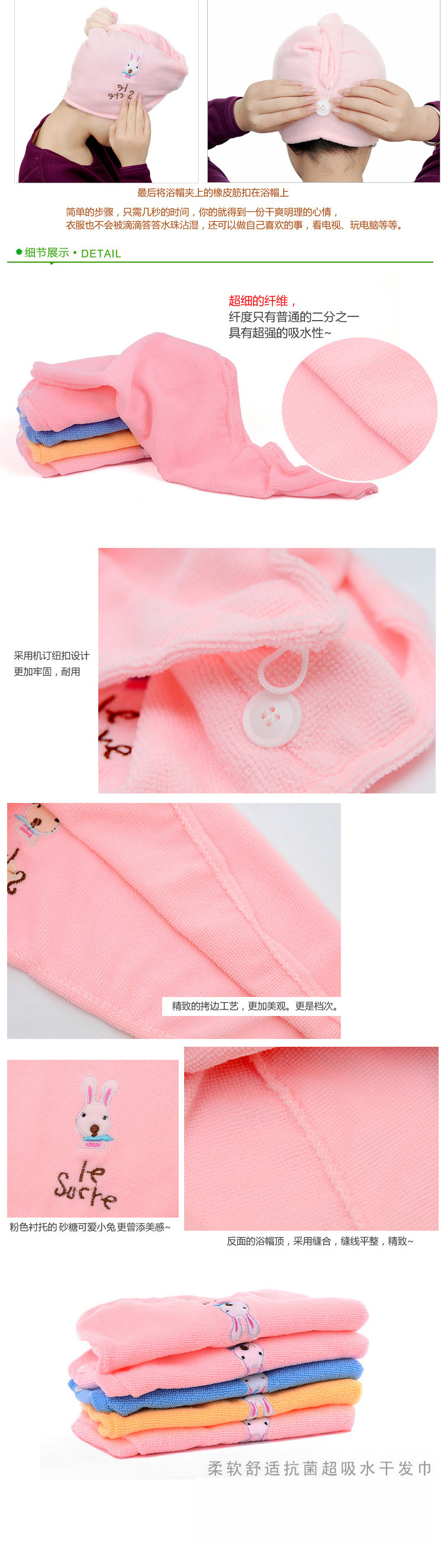 Мультяшный кролик, полотенце для волос, сухая шапочка для душа, хорошо впитывает воду