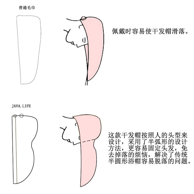 Эта сухая шляпа для волос спроектирована в соответствии с формой головы человека. Она использует полуадресный метод дизайна, который легче исправить волосы, устраняя проблемы с падением и решает проблему традиционной полу -циркулярной шляпы для душа, которая является Легко упасть.