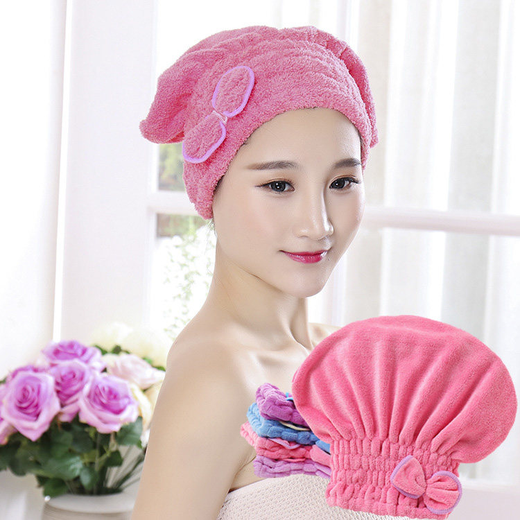 Коралловое быстросохнущее полотенце для волос с бантиком, шапочка для душа, хорошо впитывает воду