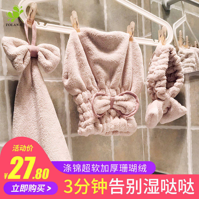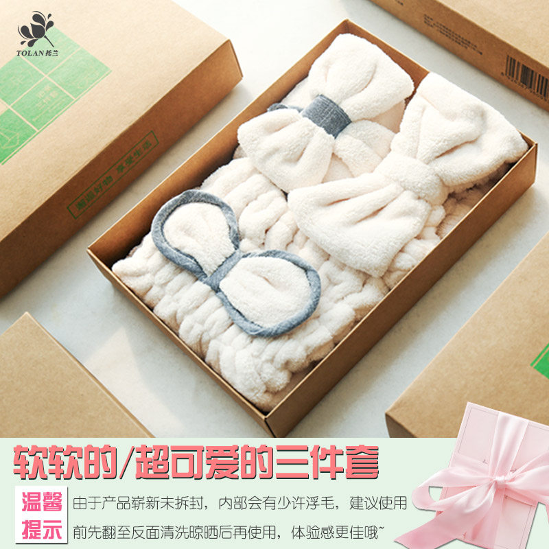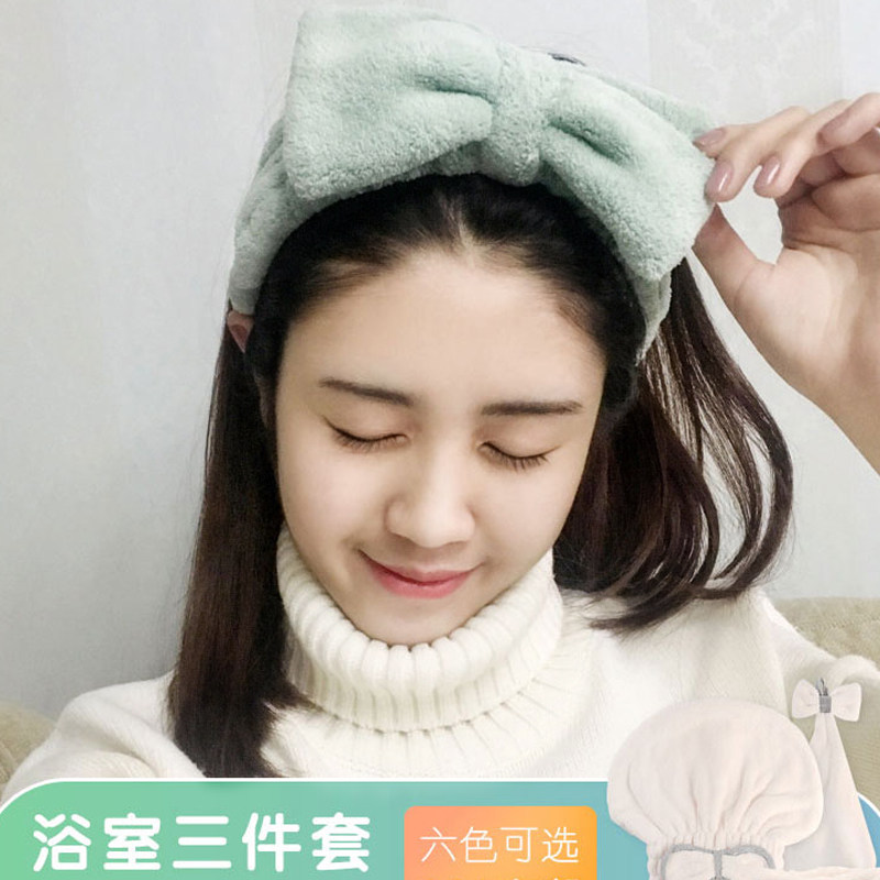 Косметическое полотенце для волос, быстросохнущий милый комплект, пучки волос, повязка на голову, хорошо впитывает воду, 3 предмета, популярно в интернете