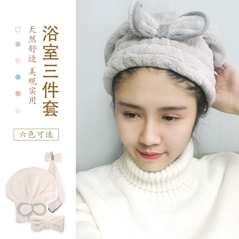 Симпатичная шапочка для душа из трех частей, шапка для сухих волос для женщин Douyin, мокрый тюрбан, супер впитывающая сумка, быстросохнущее полотенце для мокрых волос, повязка на голову