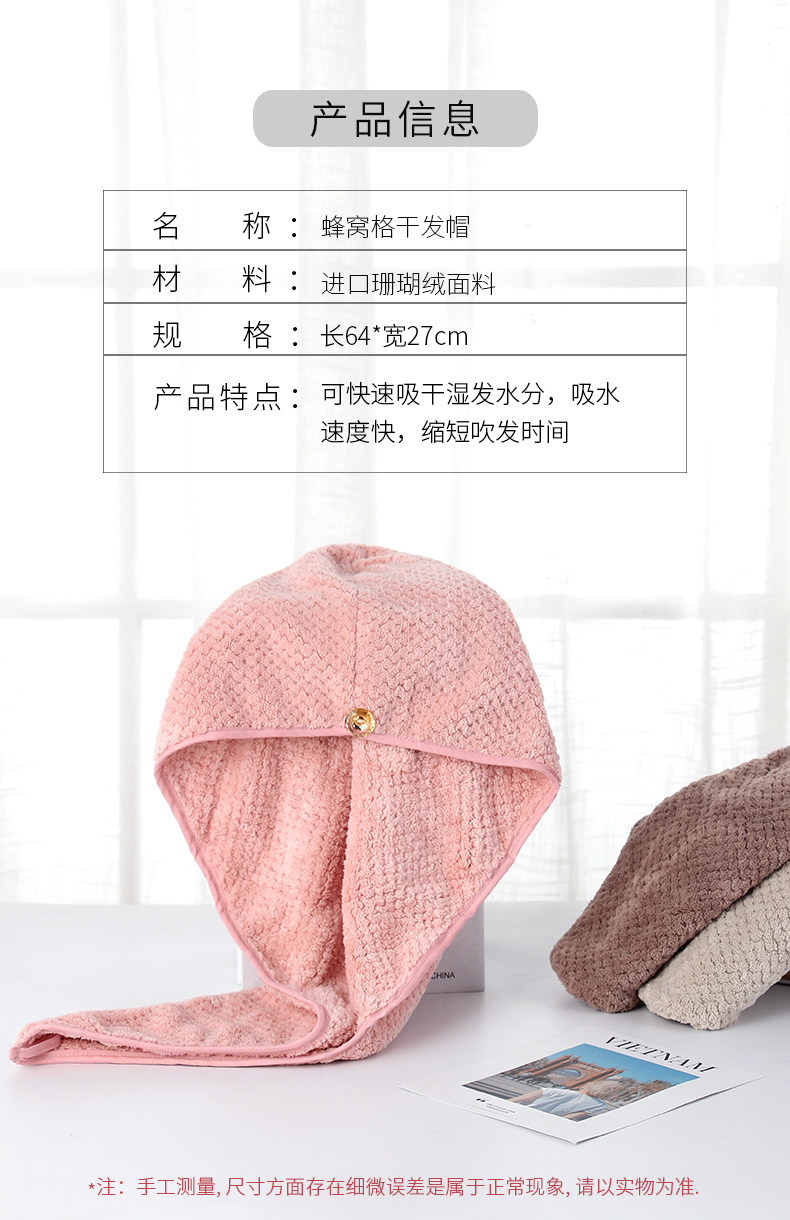 3,Эта шапочка для сухих волос изготовлена из впитывающей коралловой бархатной ткани, импортированной из Кореи., 350 г на квадрат, очень впитывающий и мягкий!