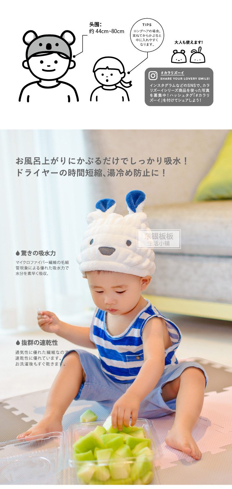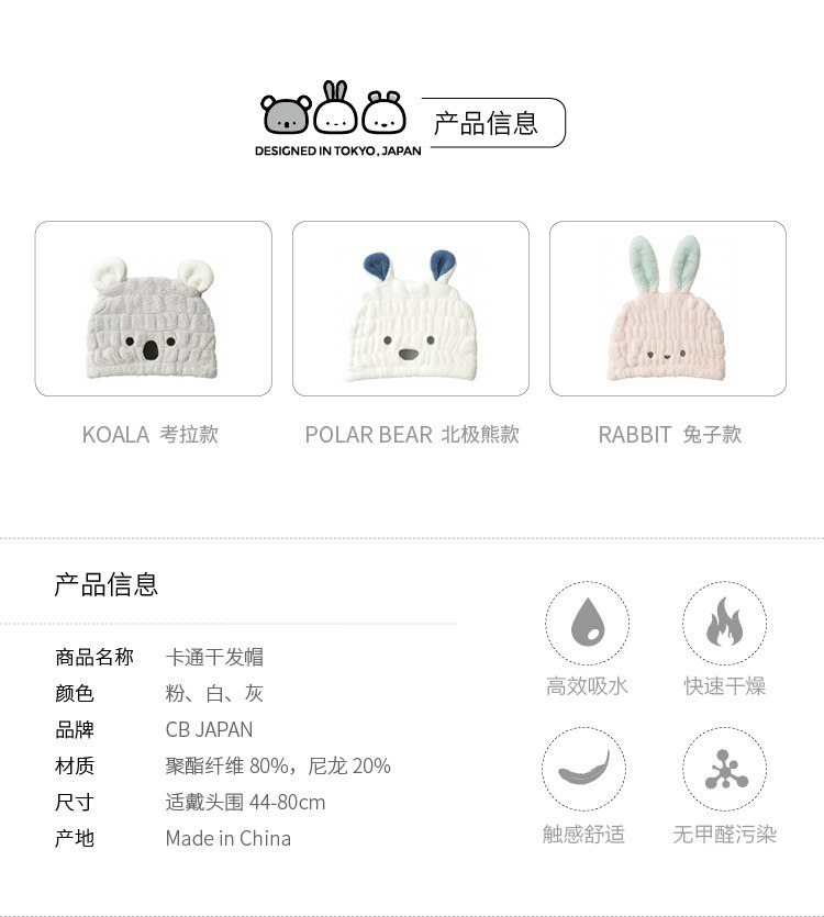 Японское импортное детское полотенце для волос, быстросохнущая шапочка для душа, хорошо впитывает воду