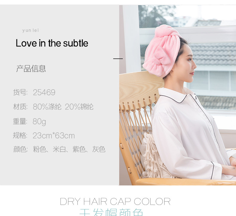 云蕾 Полотенце для волос для взрослых, милая сухая быстросохнущая шапочка для душа, увеличенная толщина, хорошо впитывает воду