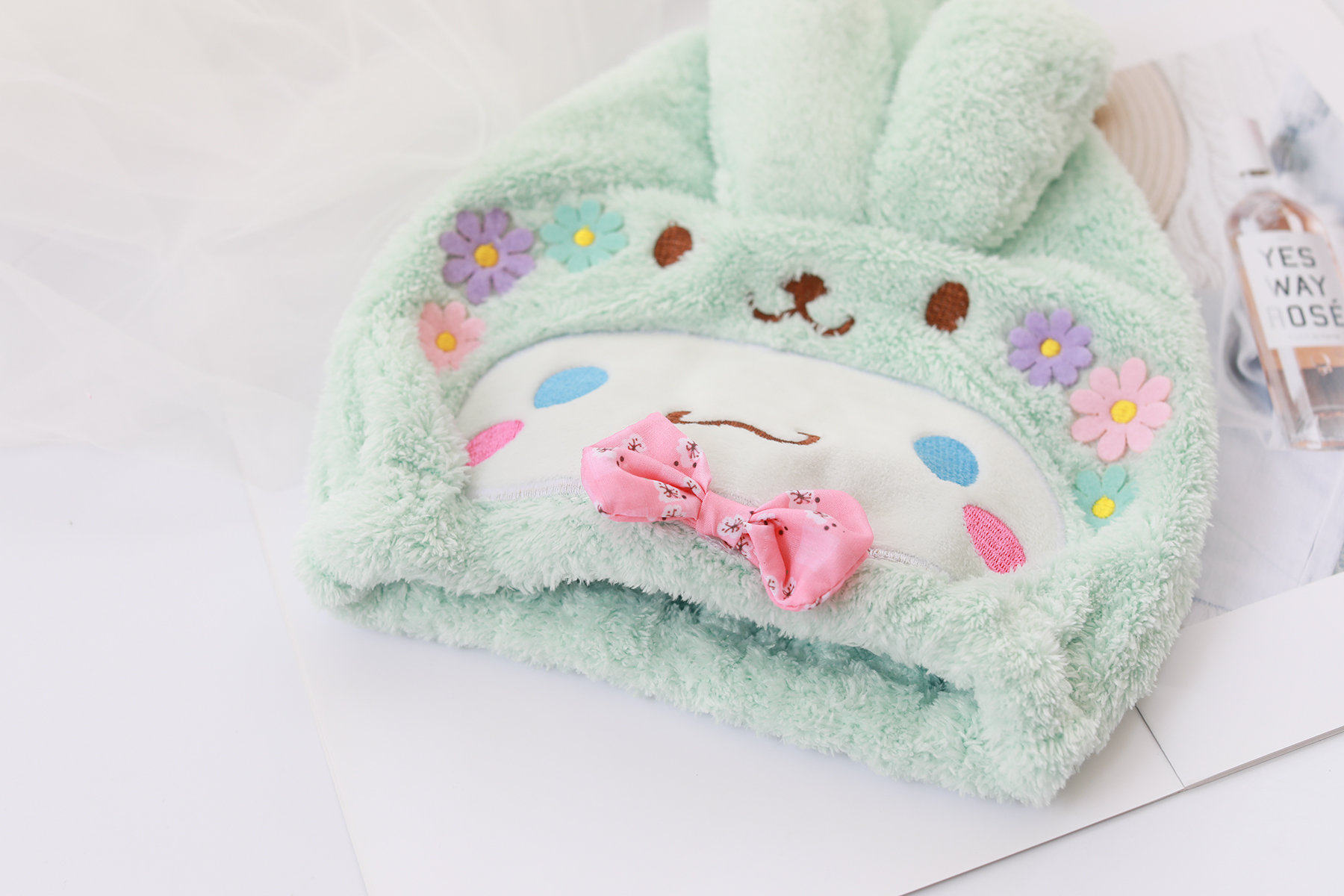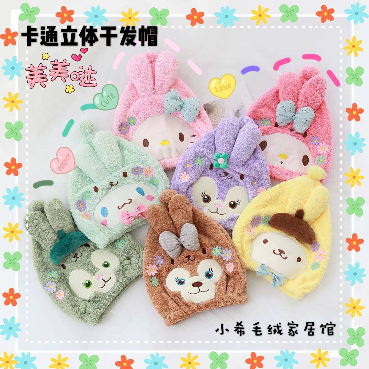Мультяшное милое трехмерное быстросохнущее полотенце для волос, сухая шапочка для душа, хорошо впитывает воду